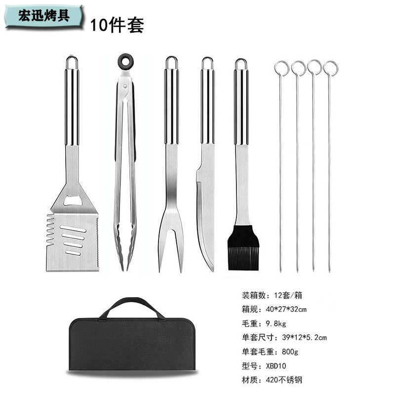 メーカー現物bbqステンレスバーベキュー道具セット布袋10点セット屋外携帯布袋セット焼き具