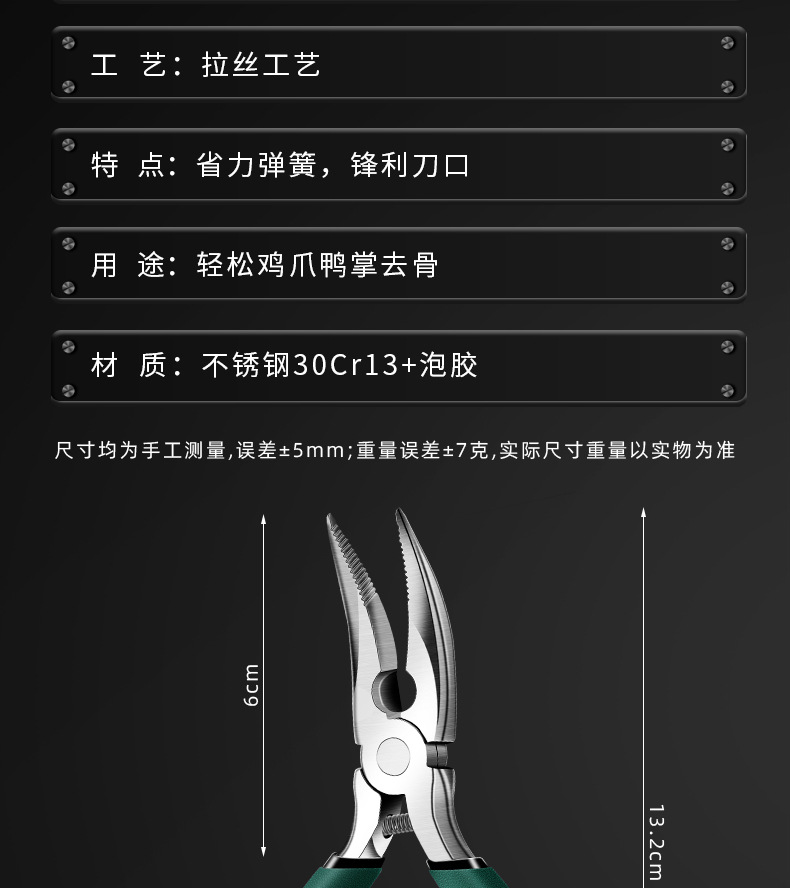 304ステンレス骨抜き神器骨なし鶏爪剃り鳳爪鶏足骨切りペンチ鶏足脱骨専用工具
