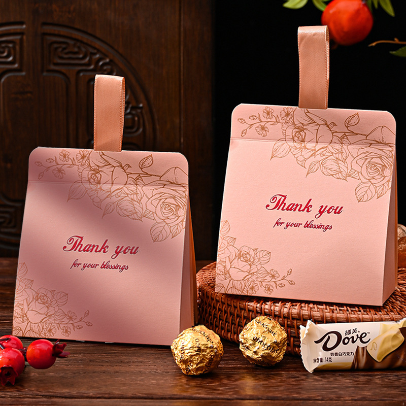 2023新型結婚喜糖箱卸売りins風無折り畳み喜糖袋高級感婚約手提げ糖箱