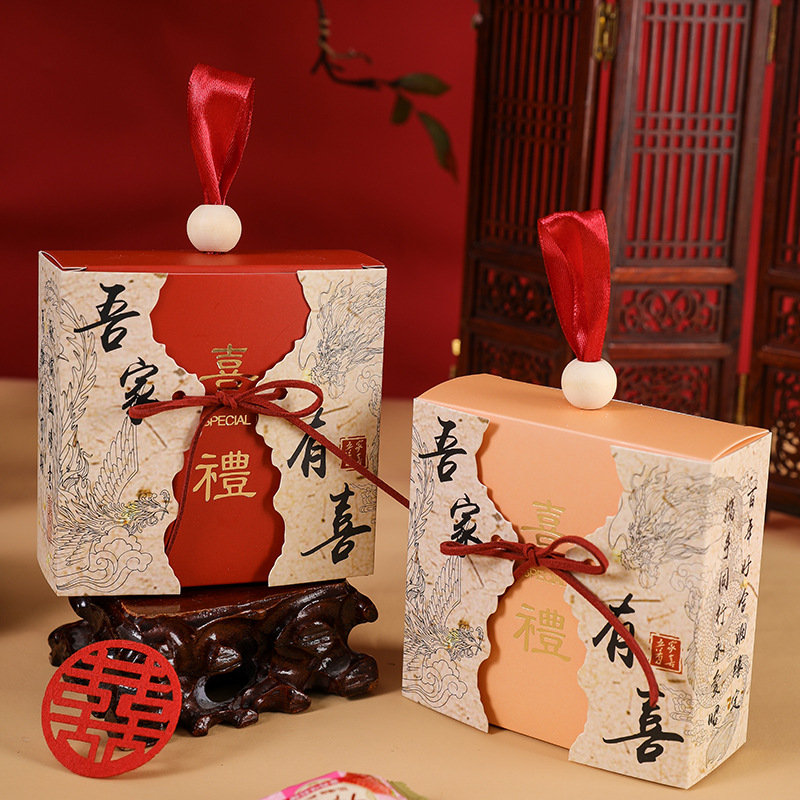 結婚喜糖箱新型国風結婚式手提げ喜糖箱新中国式婚約キャンディー箱喜糖袋空箱