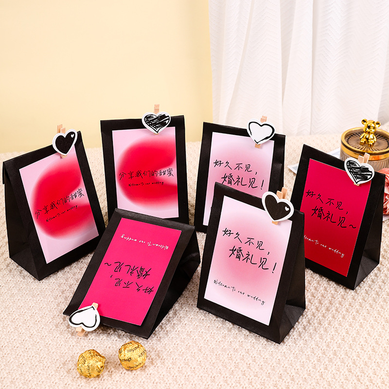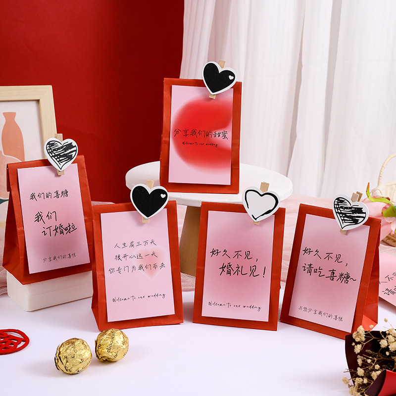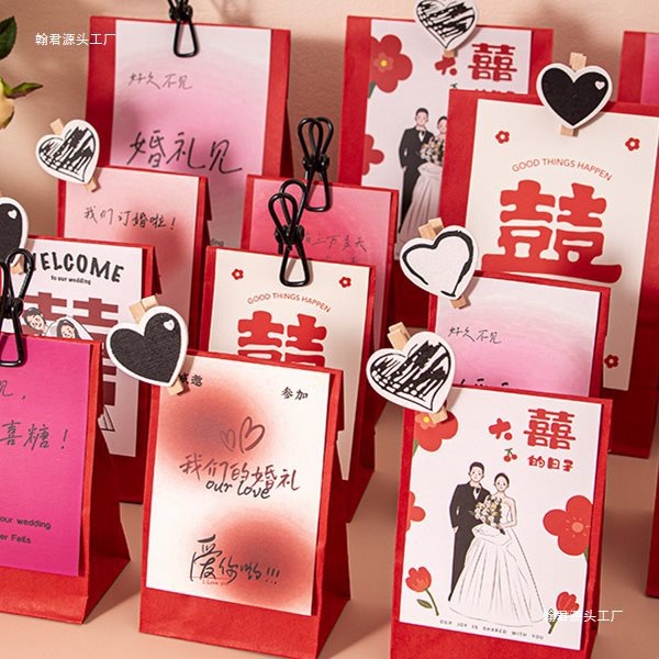 震え音小紅本結婚喜糖箱結婚式キャンディー包装袋お土産クラフト紙袋カードは決まっている