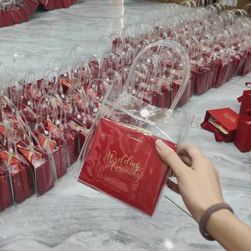 PVC透明手提袋DIY改造伴手礼喜糖袋小礼物包装袋塑料礼品袋子肶发