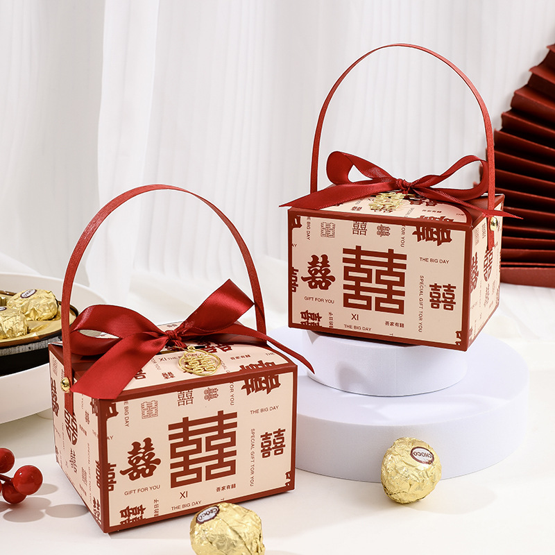 結婚喜糖箱卸売り高級感ins風結婚式手提げ糖果箱2023新型婚約喜糖袋