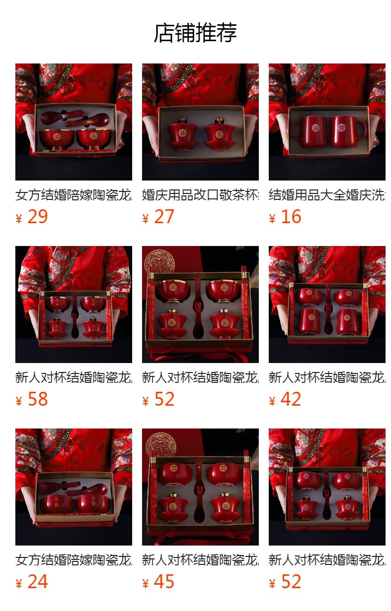 ウェディング用品ワインレッド彫刻陶磁器喜碗結婚喜碗対碗喜杯敬杯喜碗礼箱8点セット