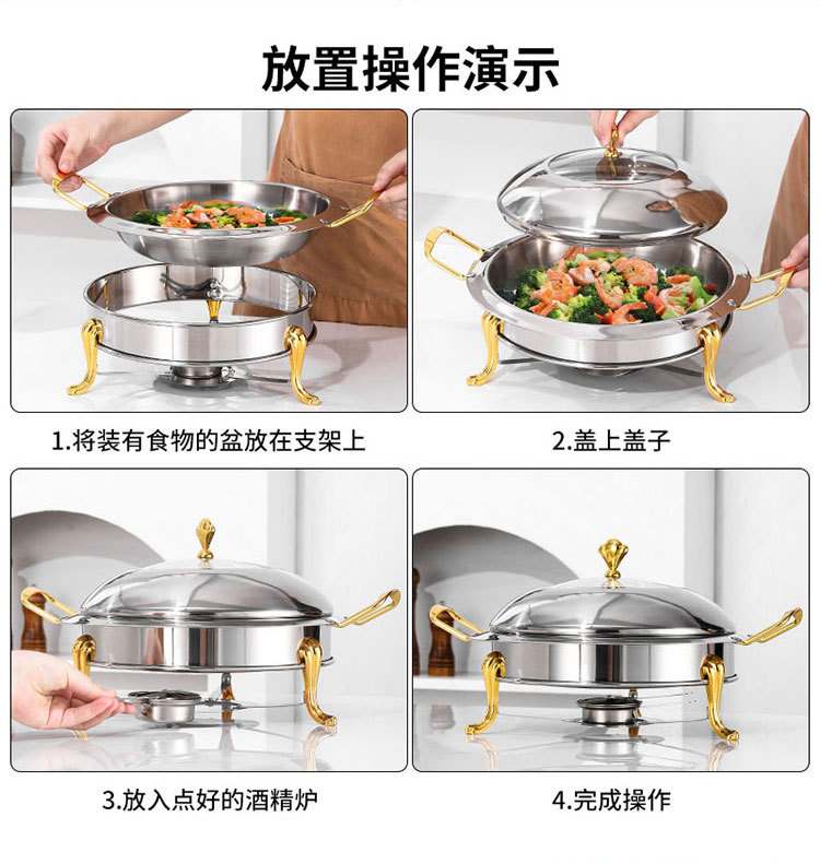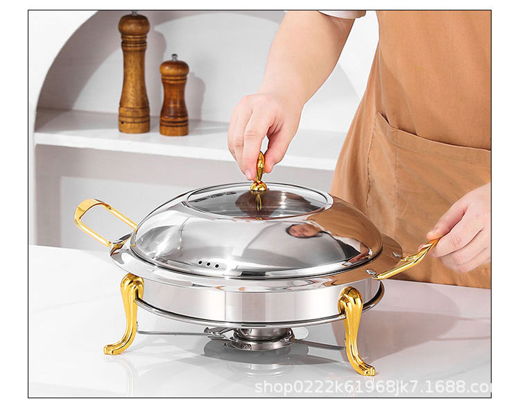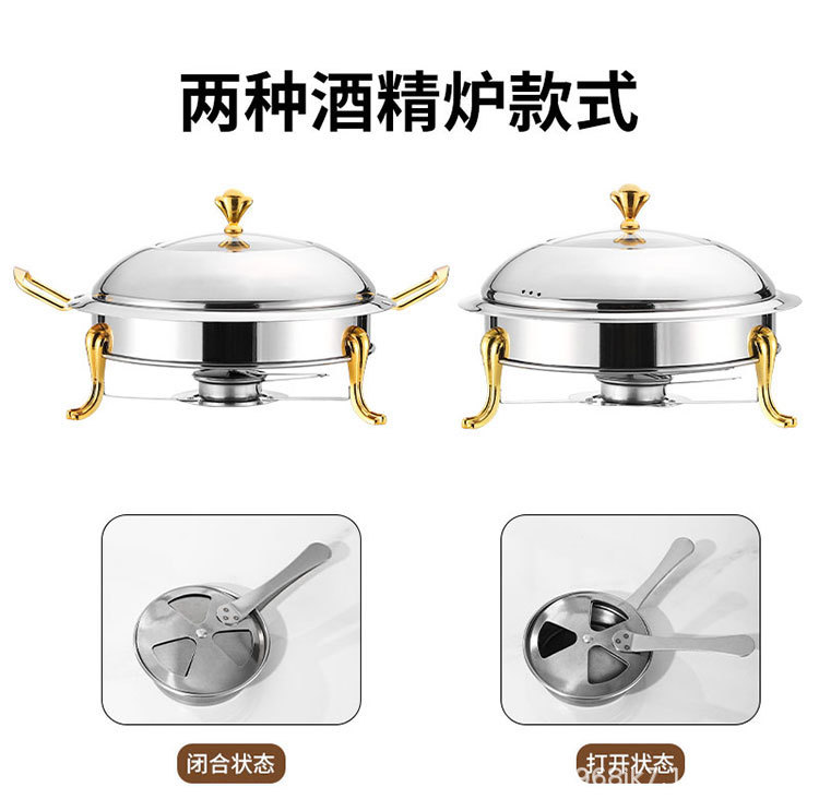 国境を越えたステンレス金色円形セルフサービス炉ホテル保温炉レストラン食品ヒーターアルコール炉