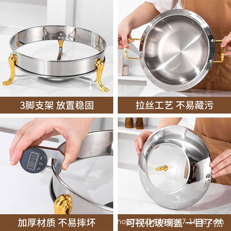 国境を越えたステンレス自助ガラス食堂アルコール加熱金色自助保温布菲炉吊り下げ食堂炉