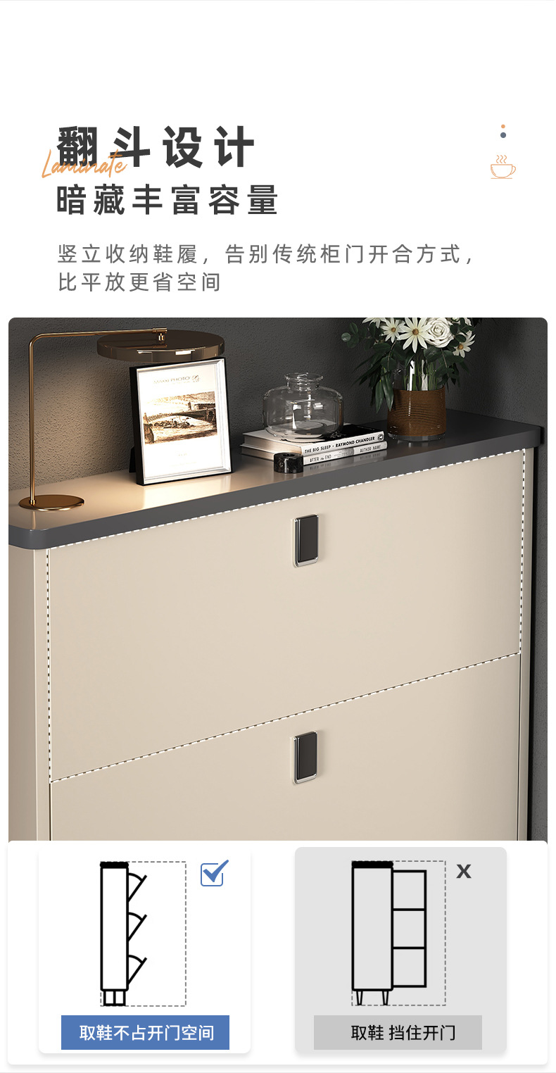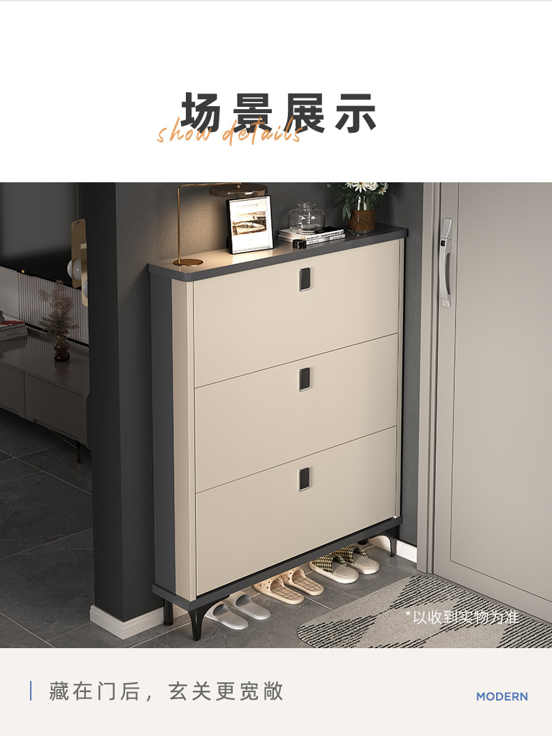 超薄型靴キャビネット、非常に狭いホームエントランス、2025年の新しいクリームスタイルの屋内エントランスキャビネット、ダンプシューズラック
