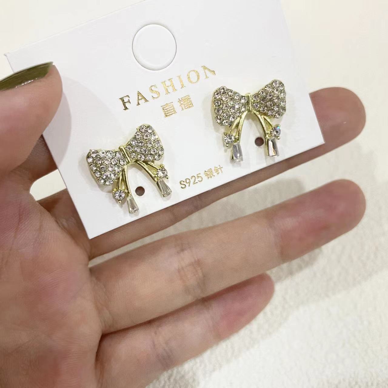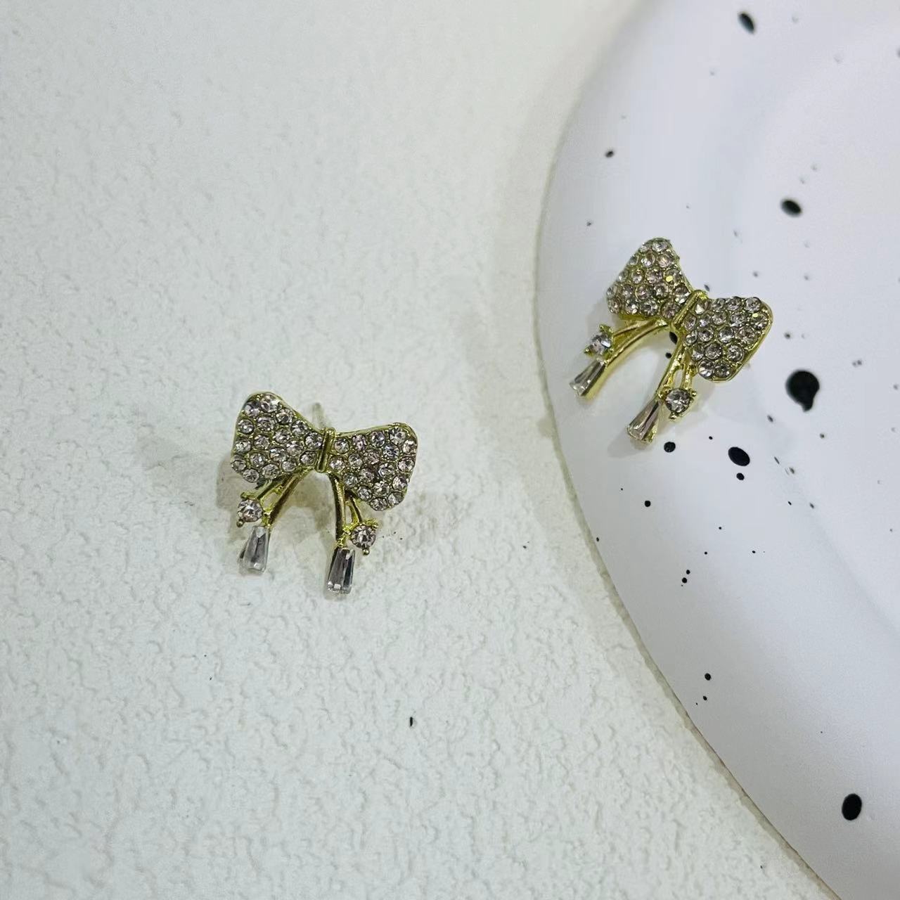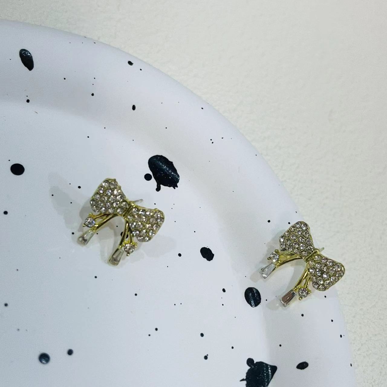 ファッションの軽豪華なダイヤモンドの蝶結びのイヤリングの女性の2023年の新型の大衆の設計感の気質は小さくて精巧な耳飾りです。