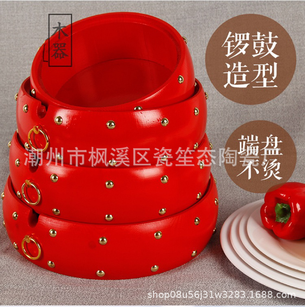中国式創意実木円形紅鼓食器ホテル置物セット商用特色海鮮ロブスター大皿