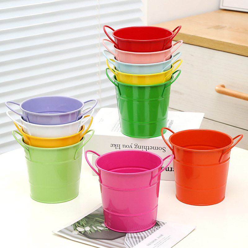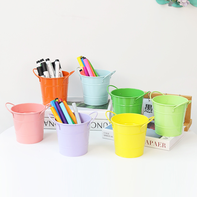 小铁桶 糖果色铁艺笔筒多肉绿植铁皮花盆儿童手提桶迷你收纳水桶