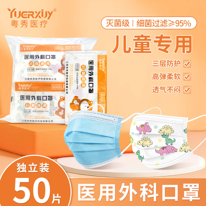 粤秀児童医療用外科マスク滅菌独立包装使い捨て三層メルトブローン不織布一枚入