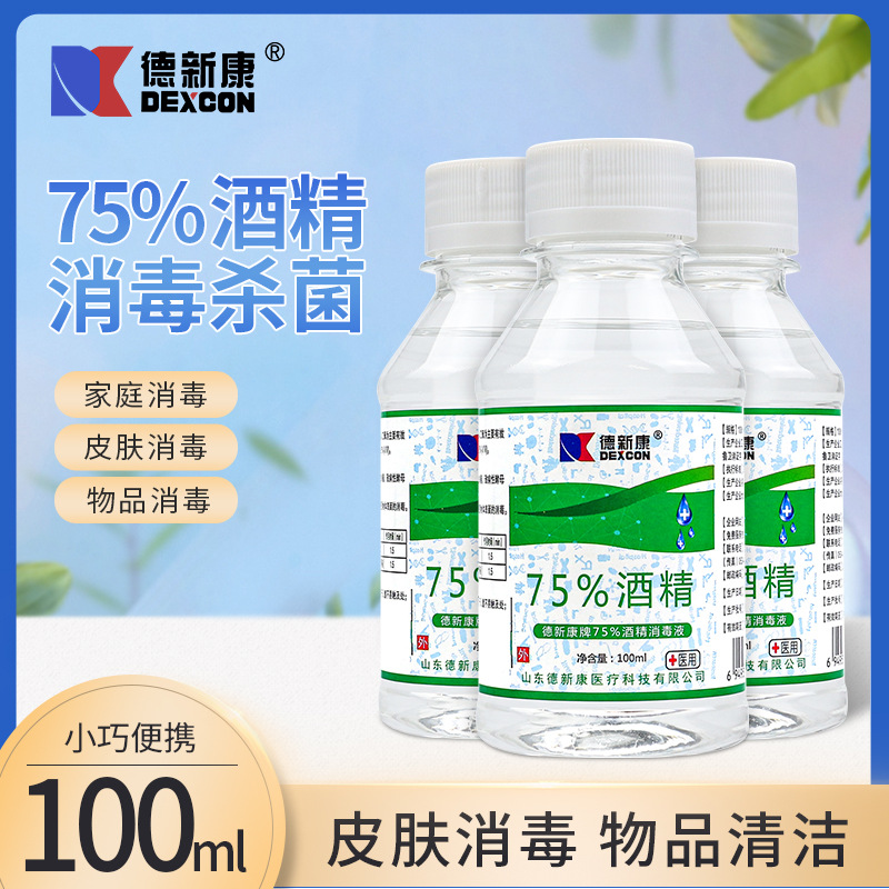 徳新康医療用75% アルコール消毒液皮膚傷口殺菌家庭用環境消毒75度エタノール100ml