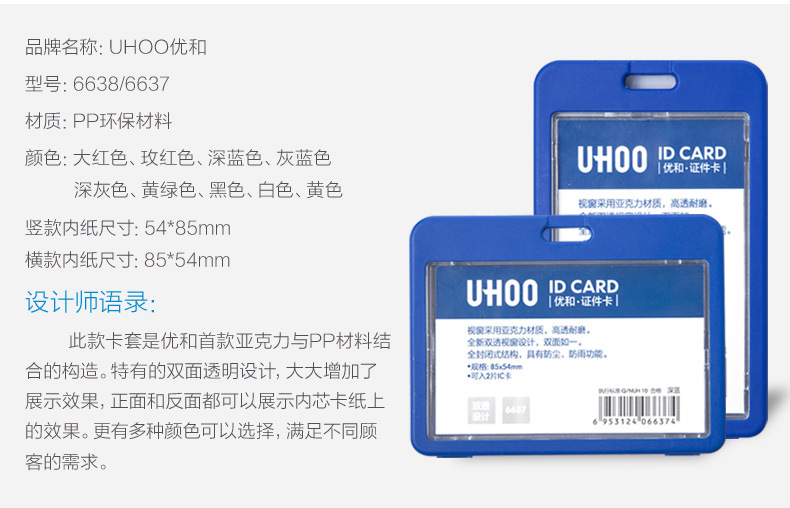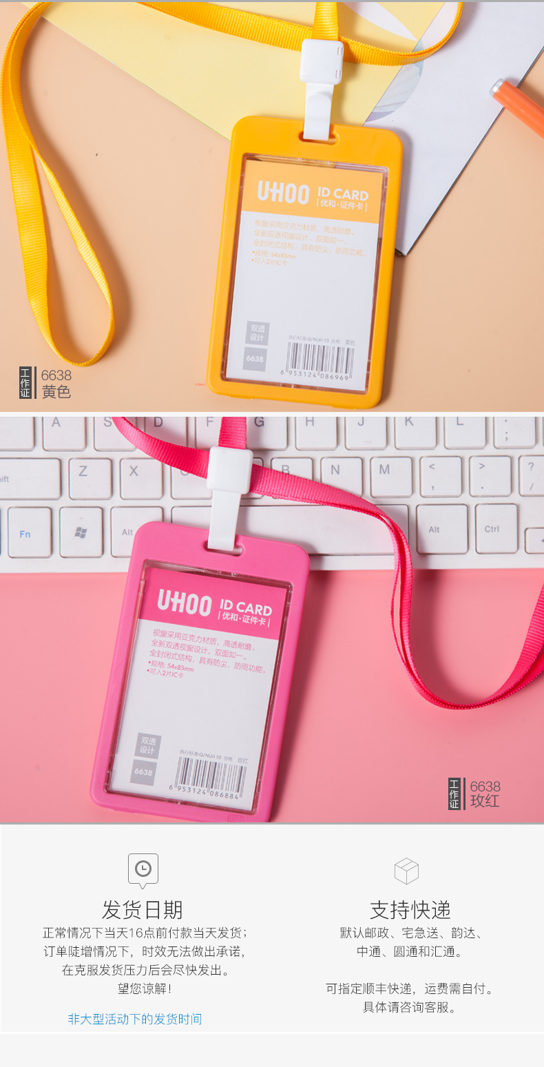 優和6634カードセット縦型工牌バス入退室セット証明書掛けロープ工牌カスタムロゴ胸牌学生証