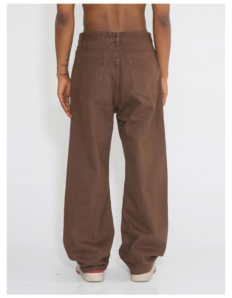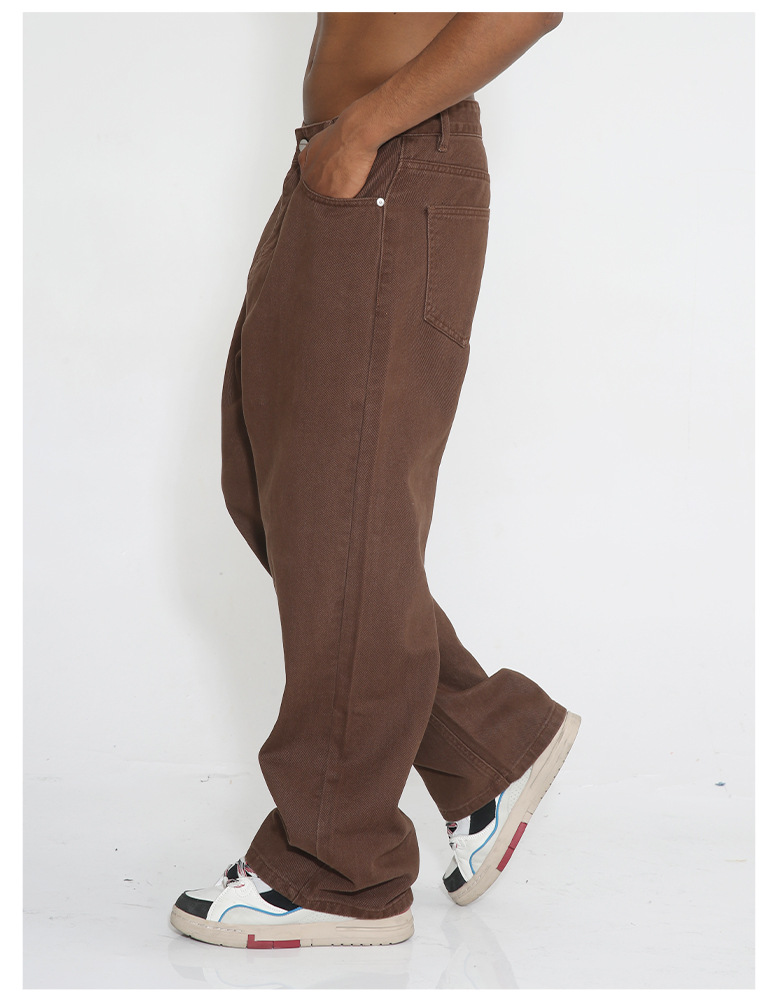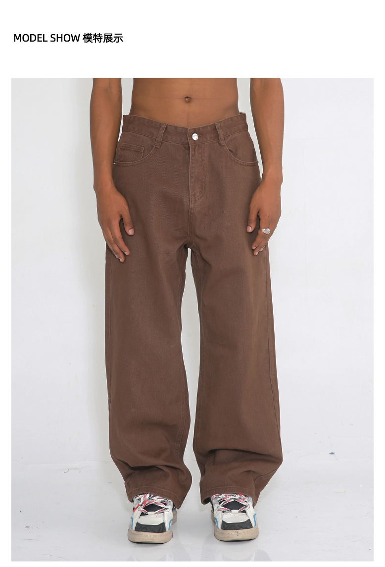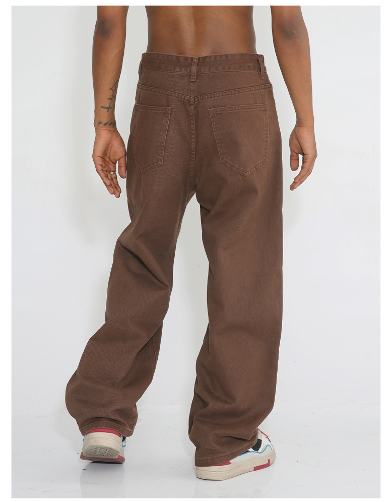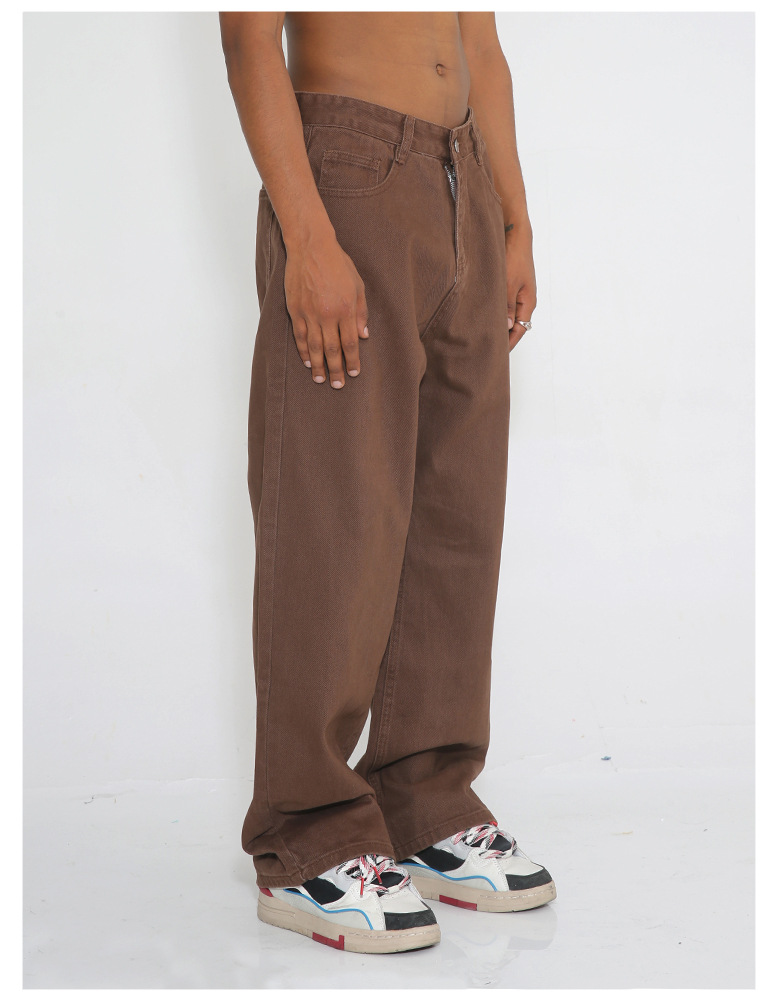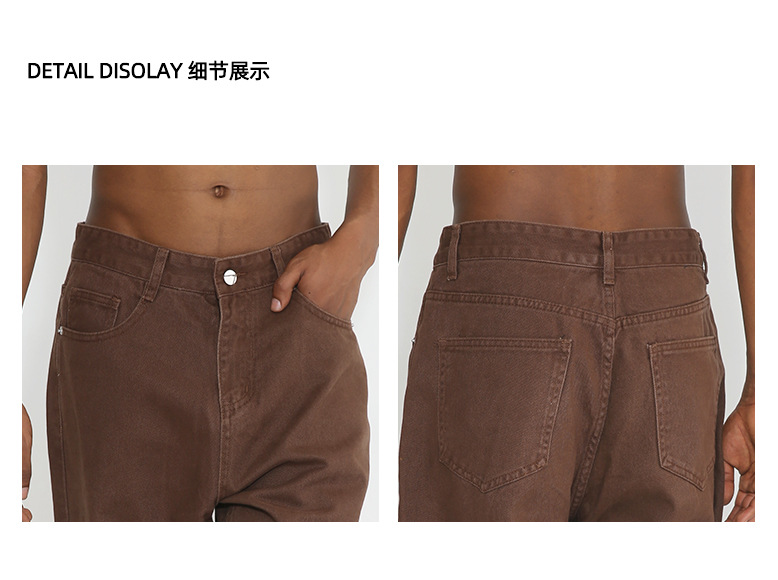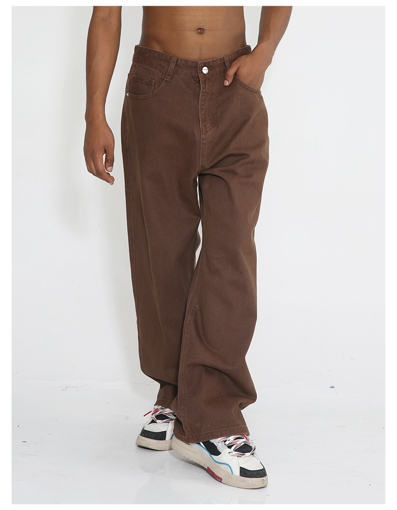 EFジーンズ | ストレートでゆったりとした韓国風シンプルなミッドハイウエスト無地デニムパンツ(コーヒー色)