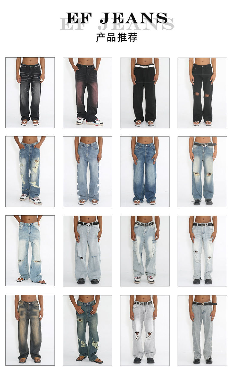 EF JEANS | 韓国版ルーズストレートオールマッチジーンズメンズバックウエスト弾性ベルトカジュアルパンツ