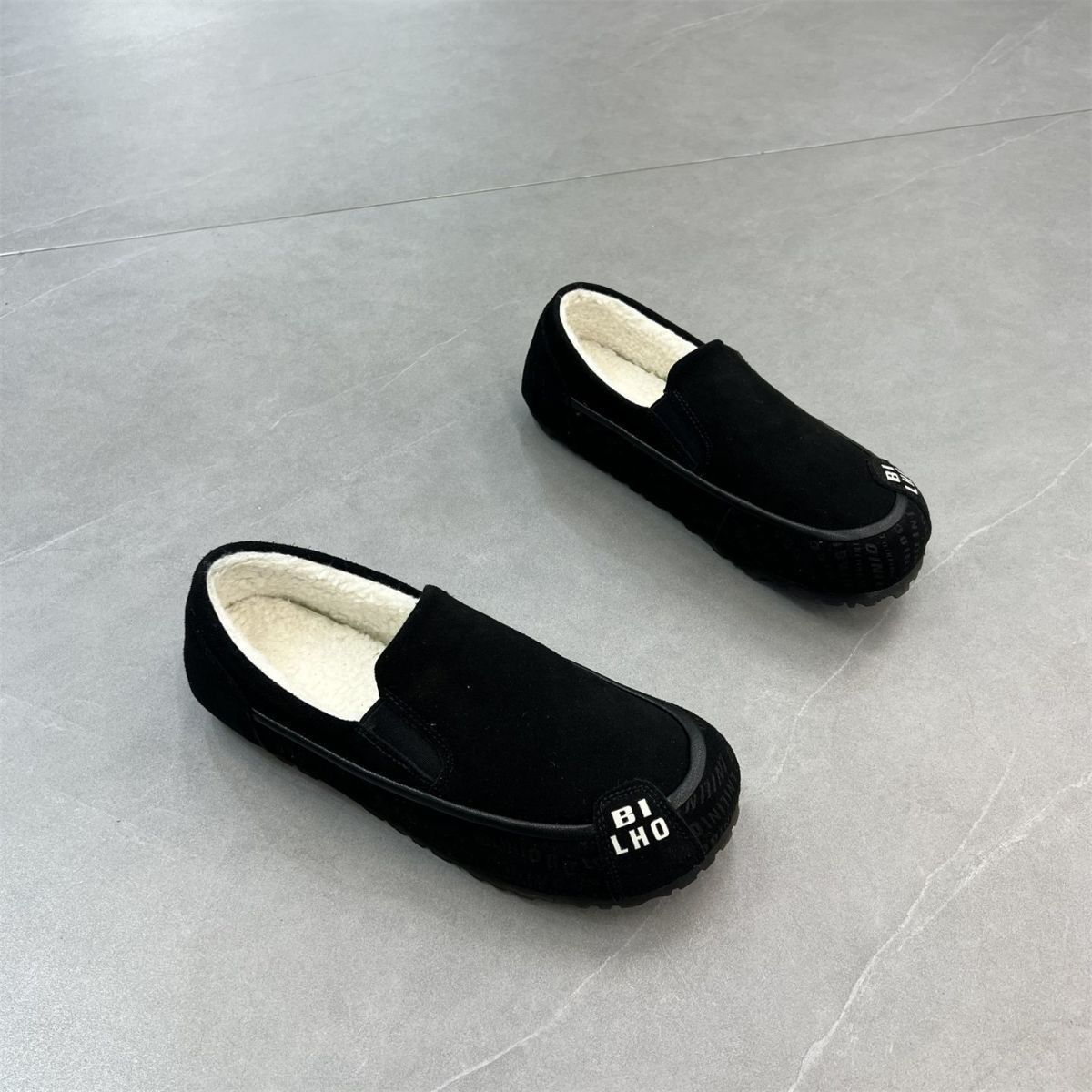 冬季新款轻便一脚蹬乐福鞋休闲轻便豆豆鞋加绒保暖棉鞋低帮懒人鞋