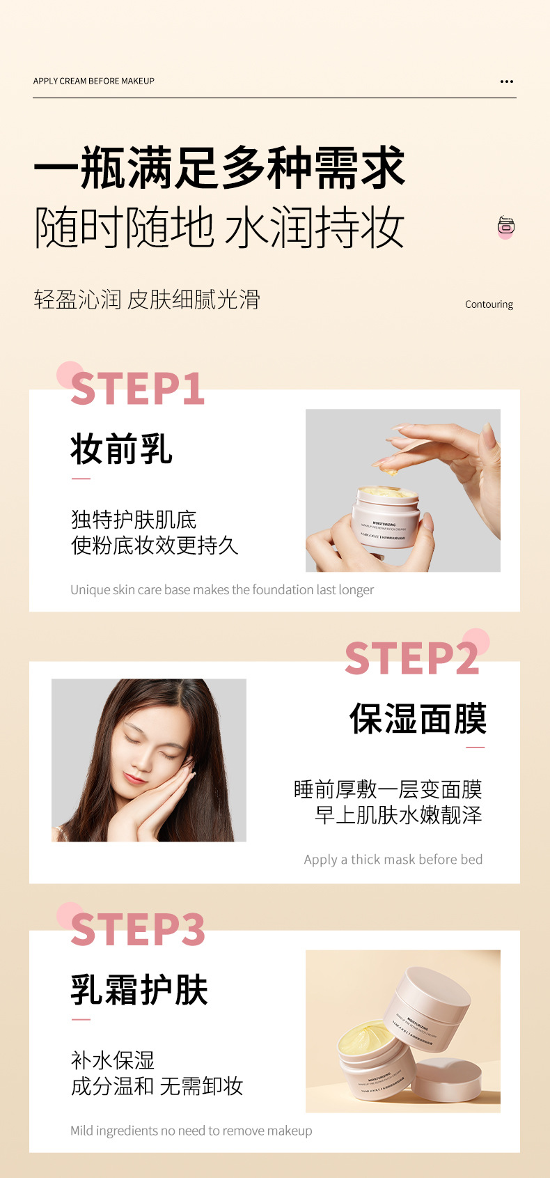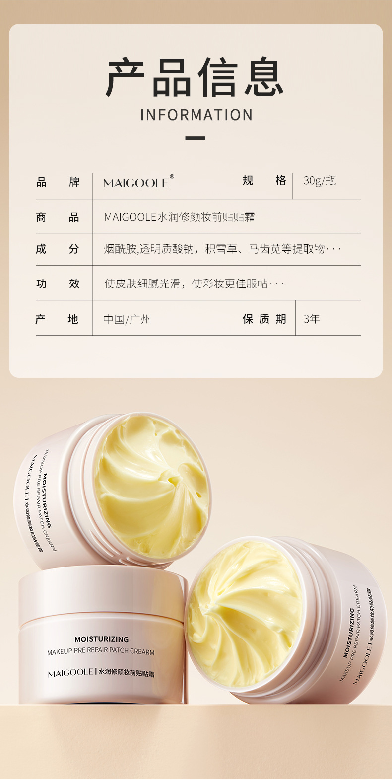 玫黛琳水潤修顔化粧前にクリームを貼って水を補給して保湿して化粧前に化粧前の乳を隔離して傷を遮ってクリームを貼ります。