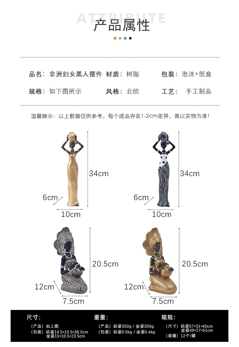 黒人女性の置物、家の装飾、リビング、玄関、テーブル、ワインキャビネット、テレビキャビネットの装飾、樹脂工芸品