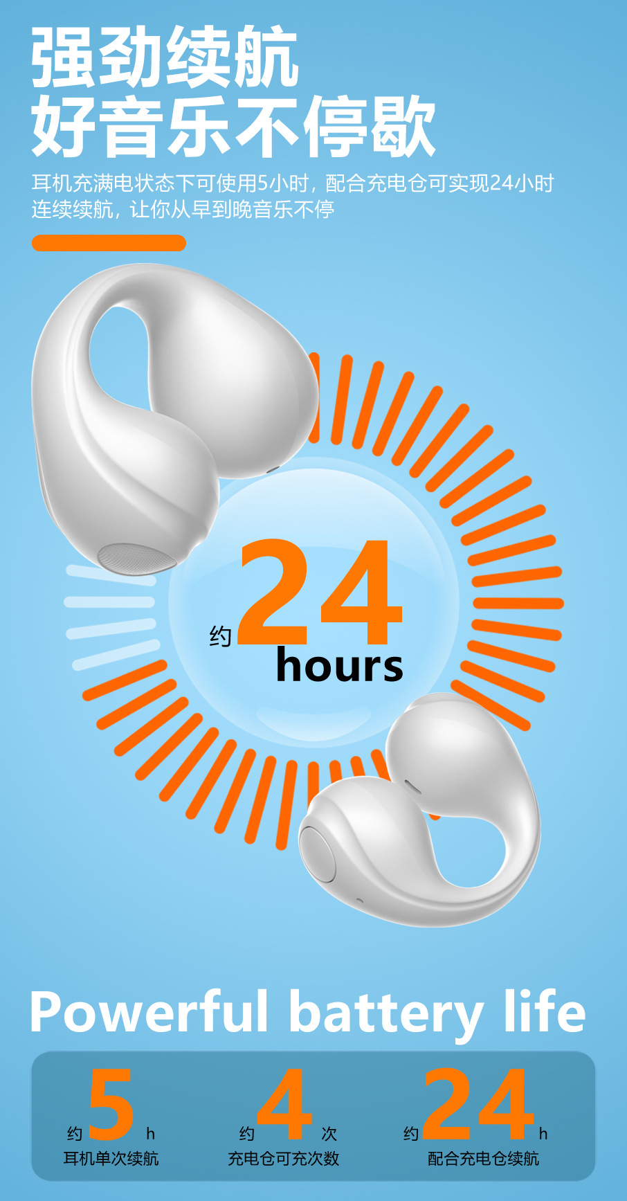 夹耳式无线蓝牙耳机不入耳高颜值高音质超长续航运动跑步无线耳机