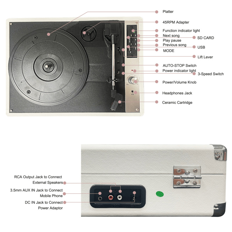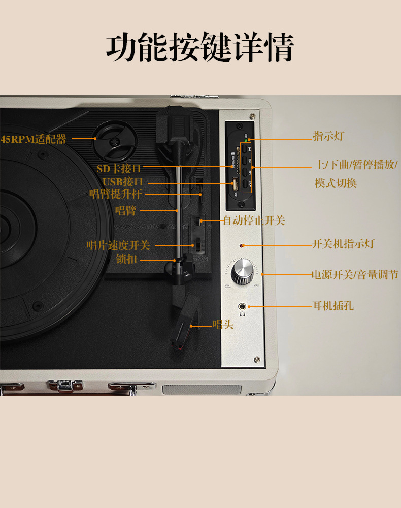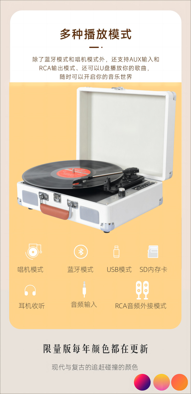 现货黑胶唱片机复古留声机一体音响蓝牙音箱客厅便携摆件礼物