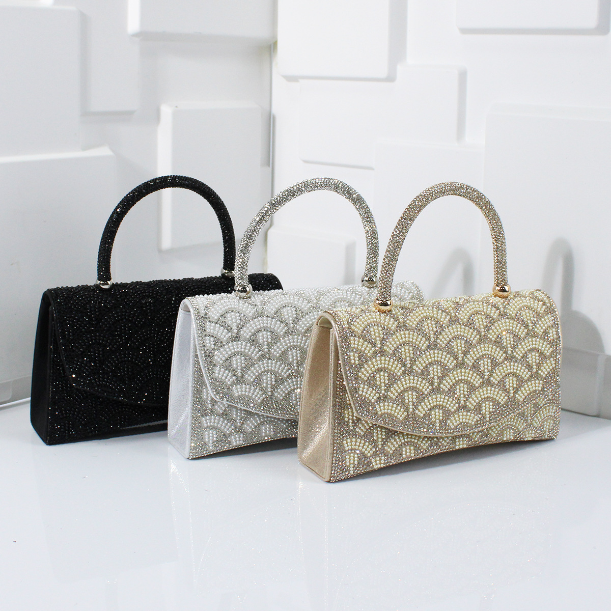 跨境电商女包晚宴包新款珍珠带钻名媛女包水钻晚装包单肩包新娘包