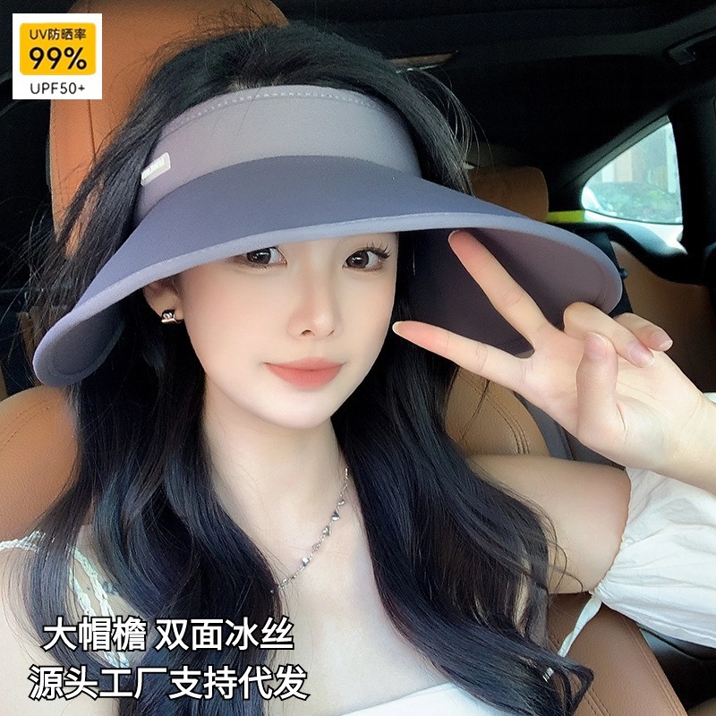 起爆両面氷糸空頂帽夏の日よけ帽日焼け止め帽がつばを大きくして紫外線防止屋外折り畳み帽
