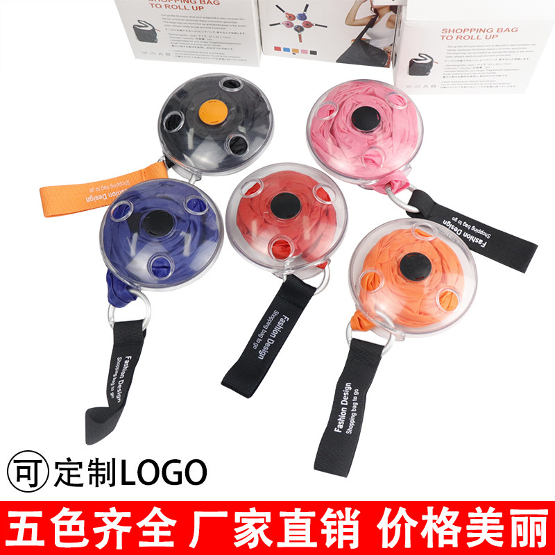 クロスボーダー折りたたみ式丸型ショッピングバッグ、携帯用伸縮式丸型ショッピングバッグ、収納バッグ、回転式丸型バッグ、5色展開