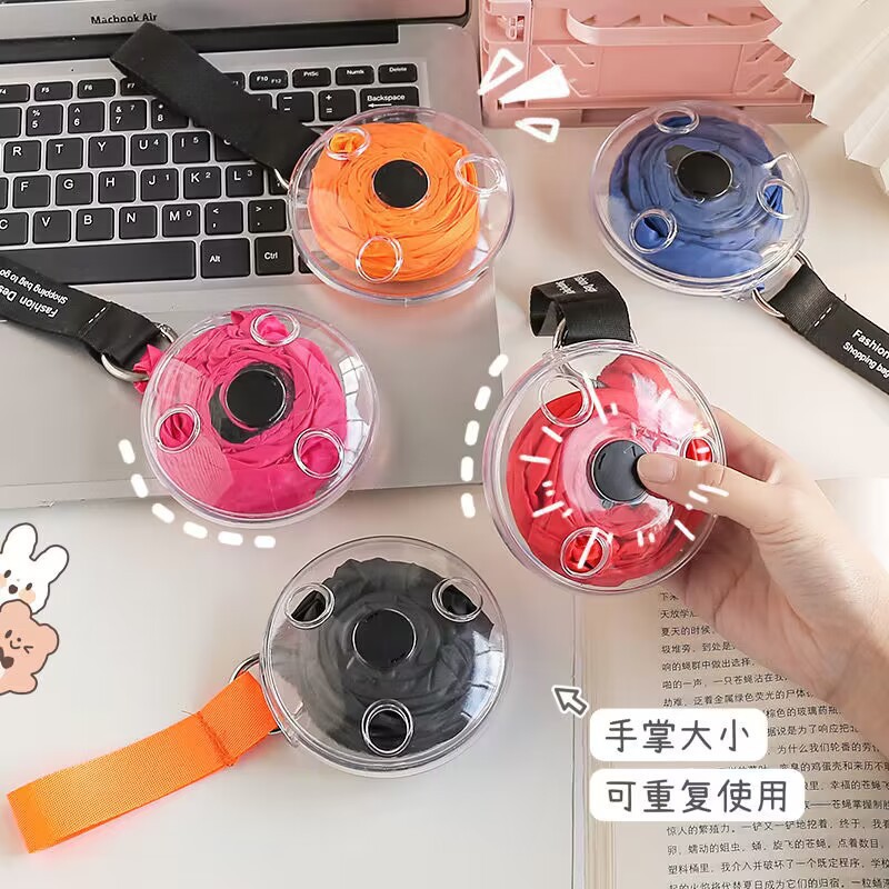 クロスボーダー円盤レジ袋携帯伸縮スーパー小円盤収納袋手提げ袋回転皿袋五色オプション