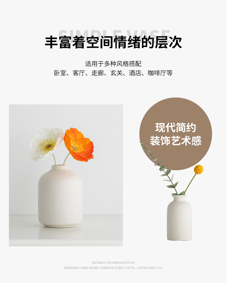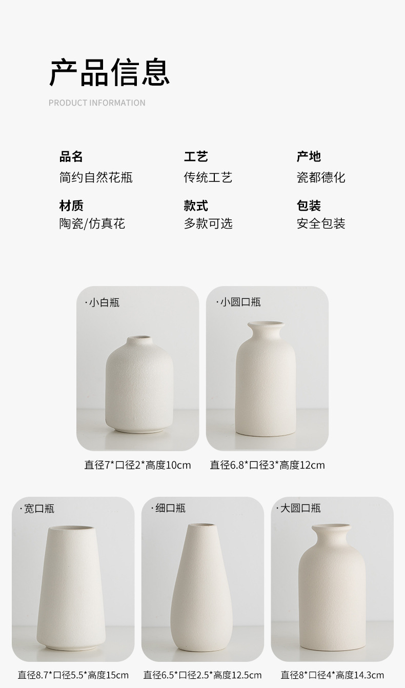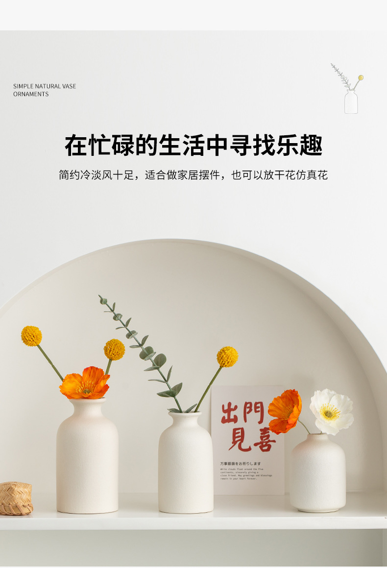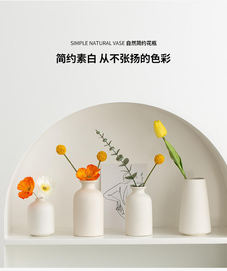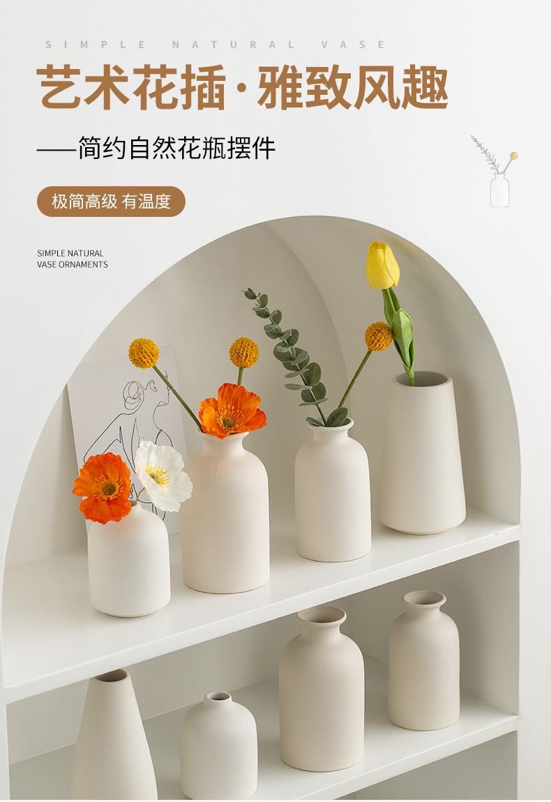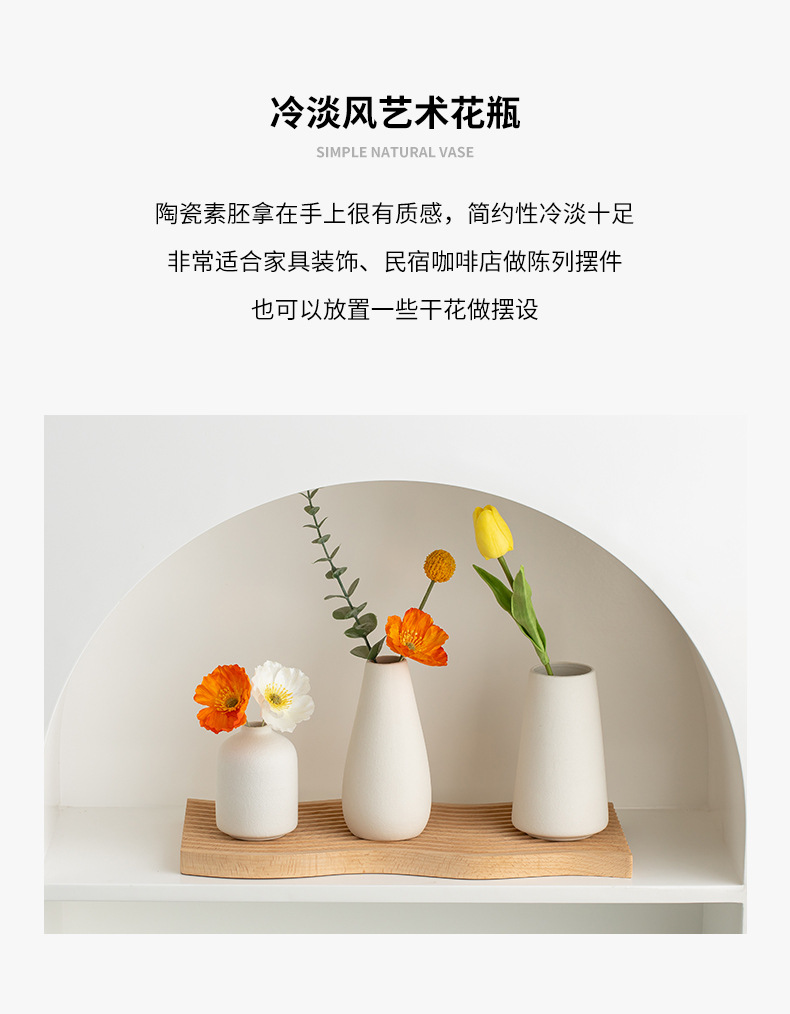 北欧ins陶磁器花瓶白画素瓶小花器シンプルな家庭客間生け花器芸術装飾品
