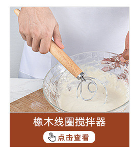 13inch オークハンドルパウダーミキサー、小麦粉ミキサー、生地混合棒、ステンレス鋼コイルエッグビーター、ケーキハンドミキサー