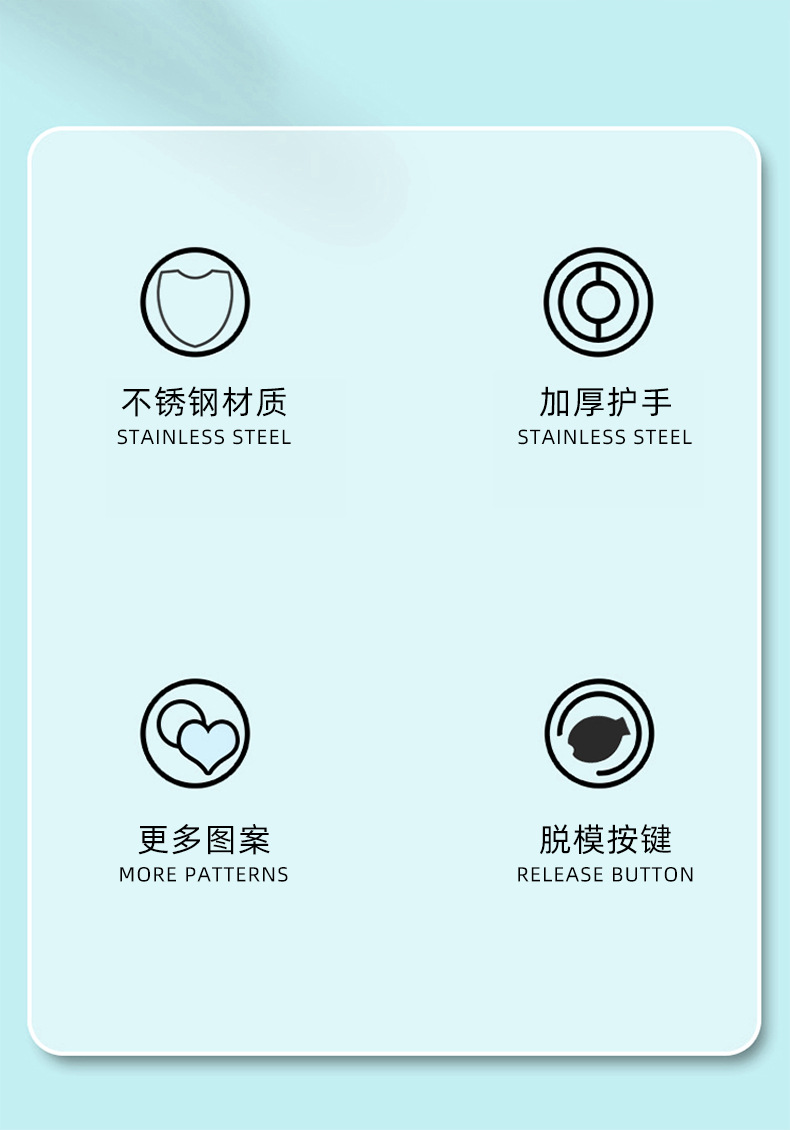 プレス型セット ステンレス製 ベビー用補助食 小混沌(シャオフン)ビスケット ウーロン(雲蝋) 蝶麺 押し出し型 手作り