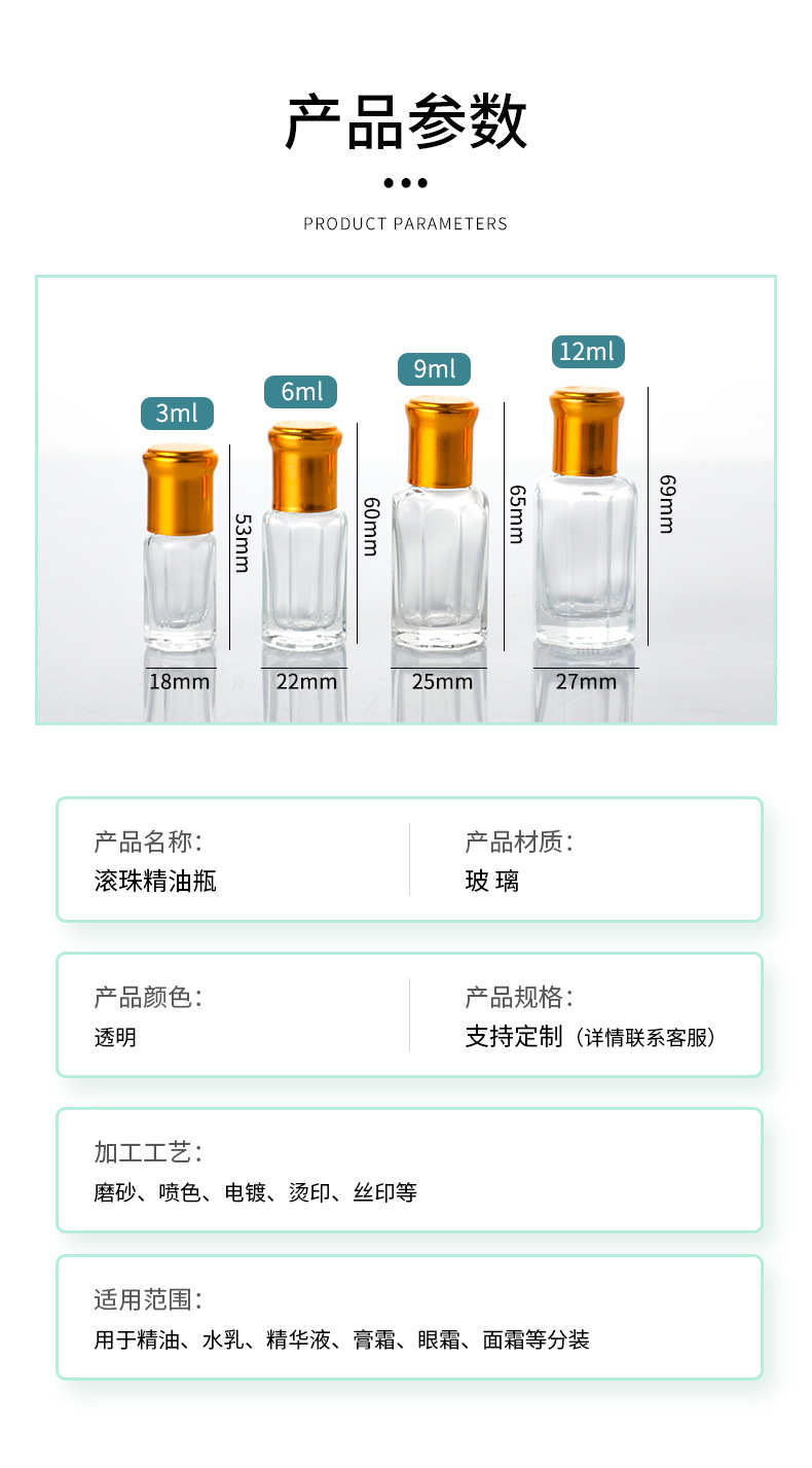 卸売りガラス透明滴管精油瓶ゴム頭精華液瓶カバー肩分注小サンプル瓶圧ポンプ押し空瓶