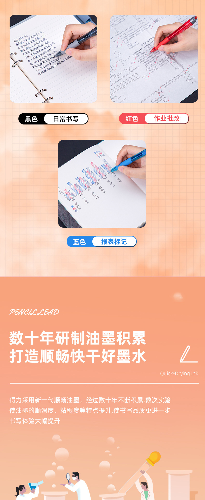 有力ボールペン押圧式押しカラーペン原子ペン学生教師黒色青色油性卸売り