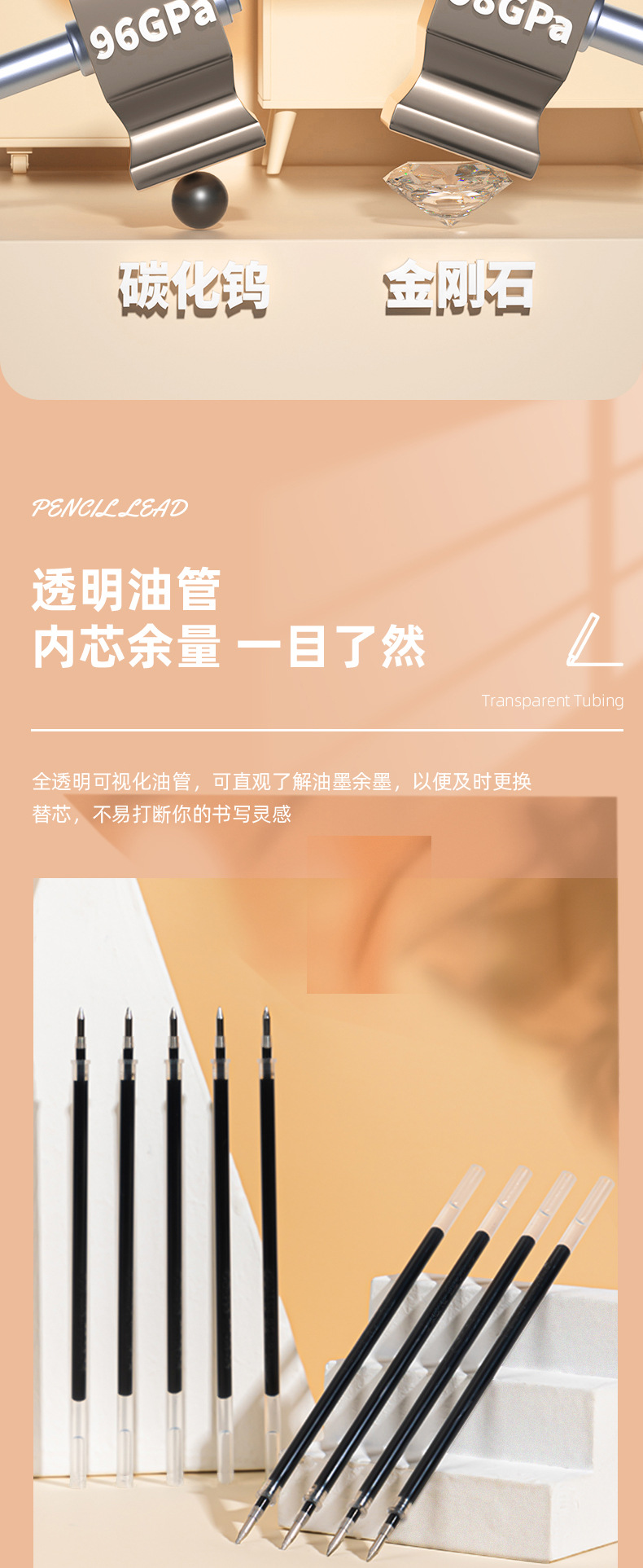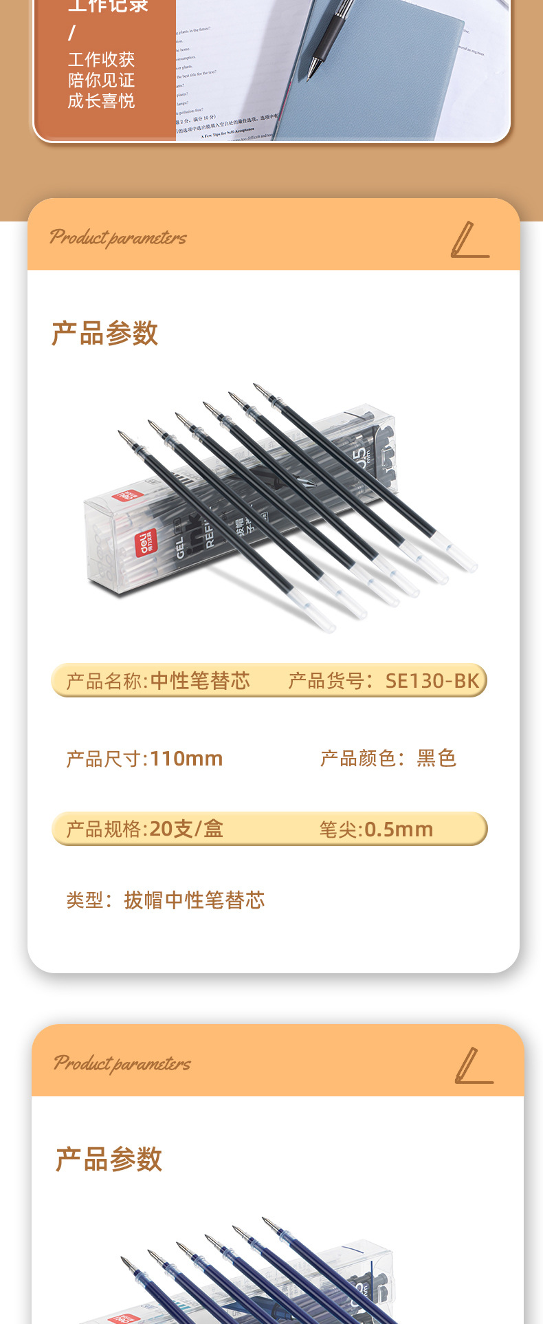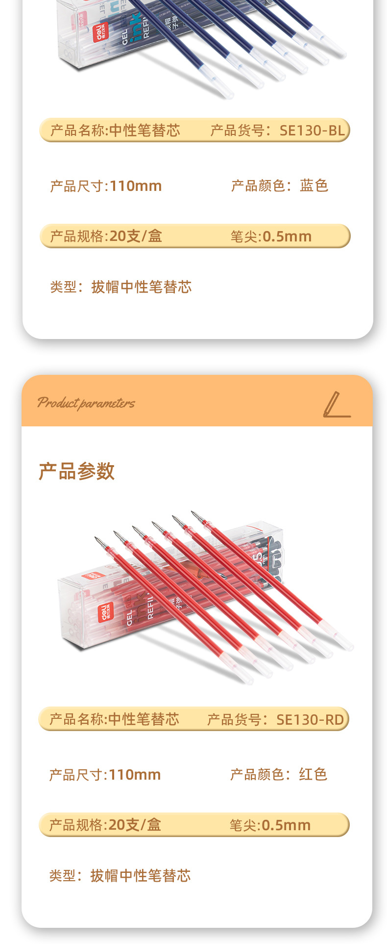 得力S206は芯を押します。0.5黒の子弾頭は中性のペンを押します。