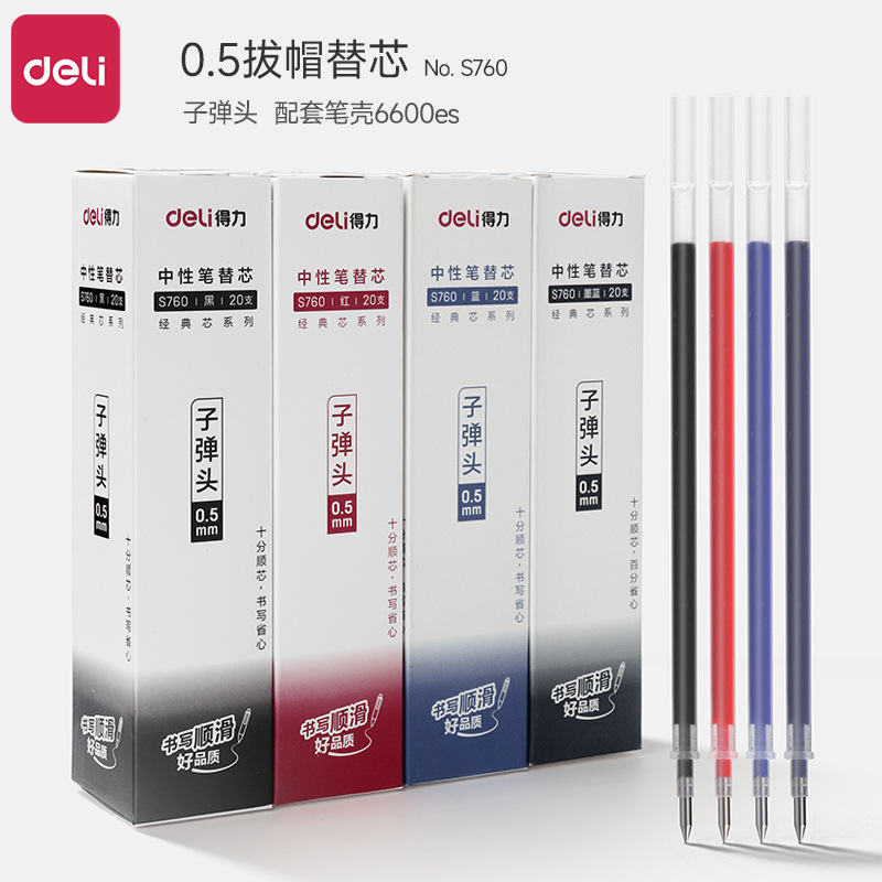 デリ 6600es ゲルペン黒 0.5 ミリメートル弾丸キャッププル水ペン青と赤署名ペンオフィス使用学生