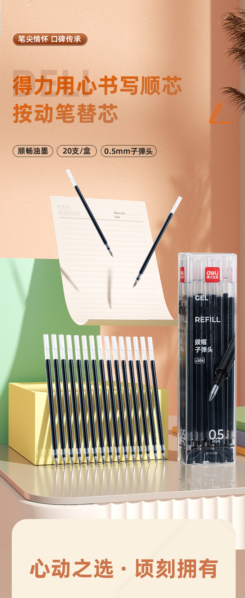 得力中性笔芯子弹头笔芯水笔芯0.5mm半针管黑色红色蓝色笔芯批发