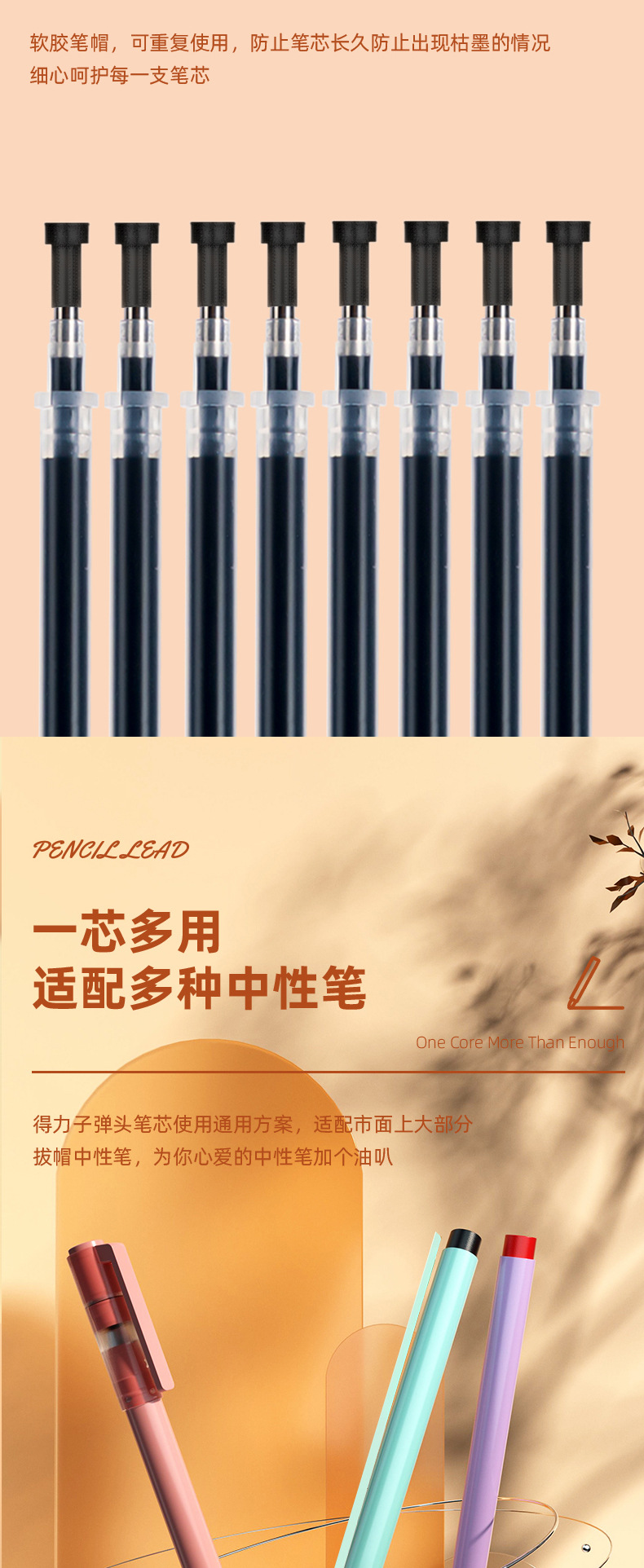 有力中性ペン芯0.5mmコア速乾子弾頭抜帽黒色赤色サインペン大容量