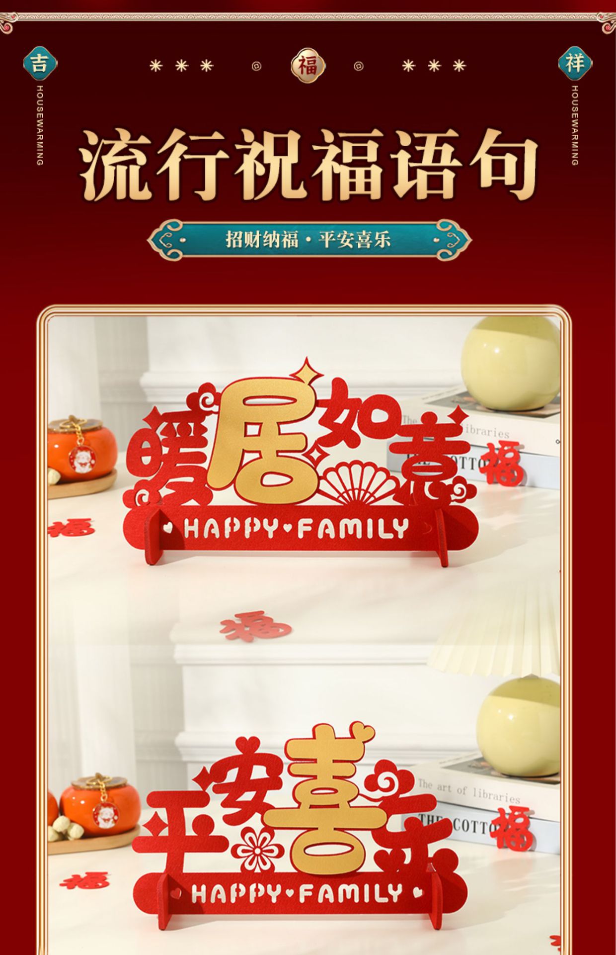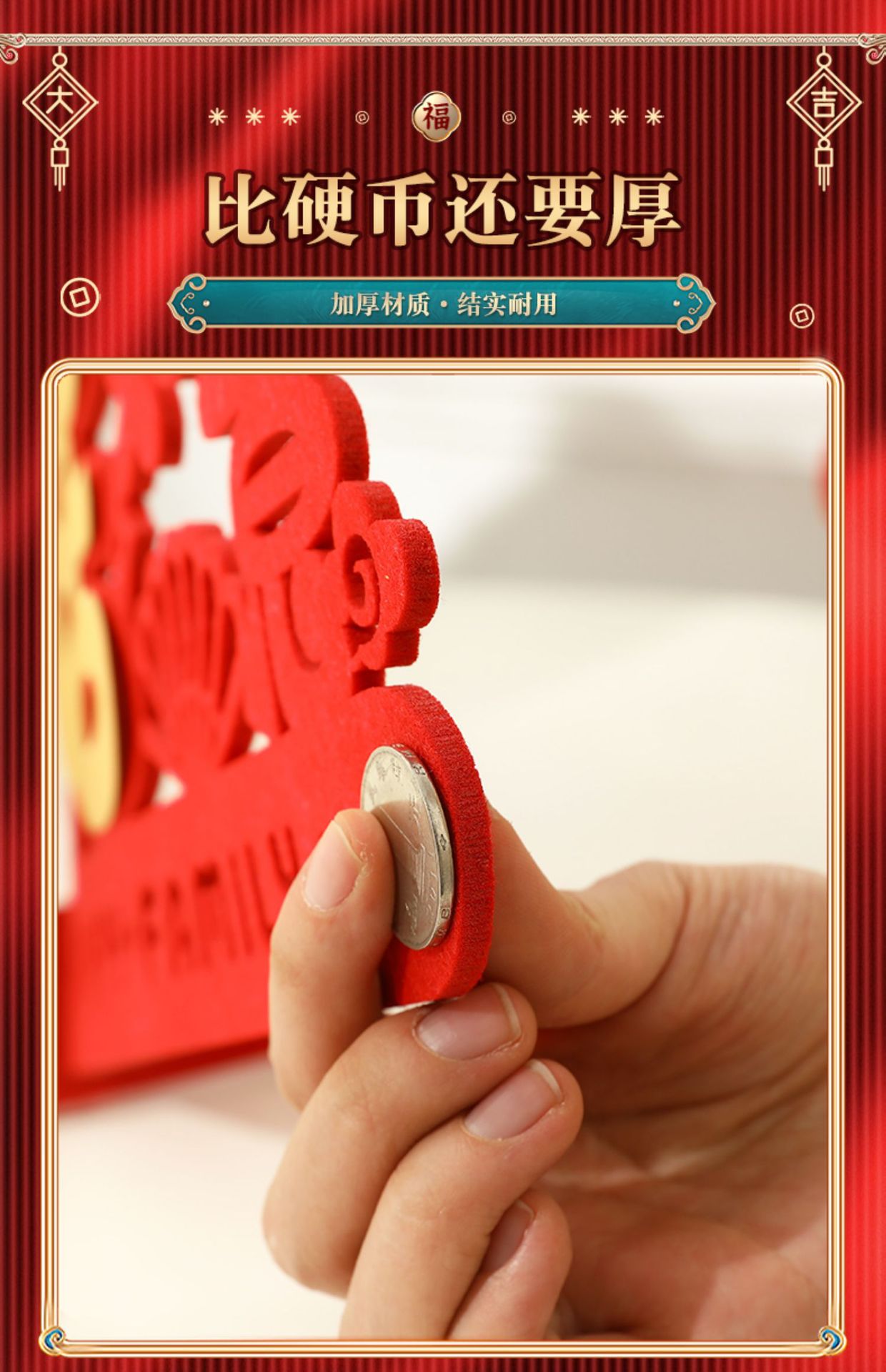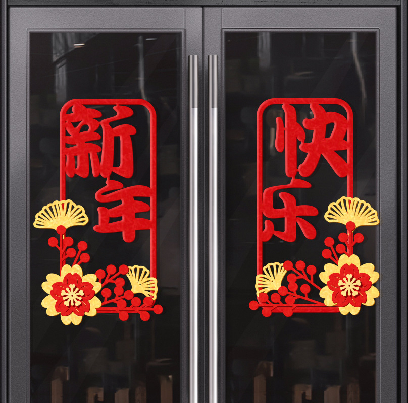 2025フェルト小対聯門貼り国風新年装飾年画不織布配置ドア貼り窓花飾り