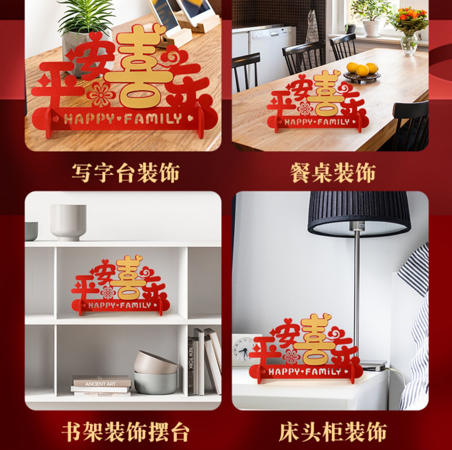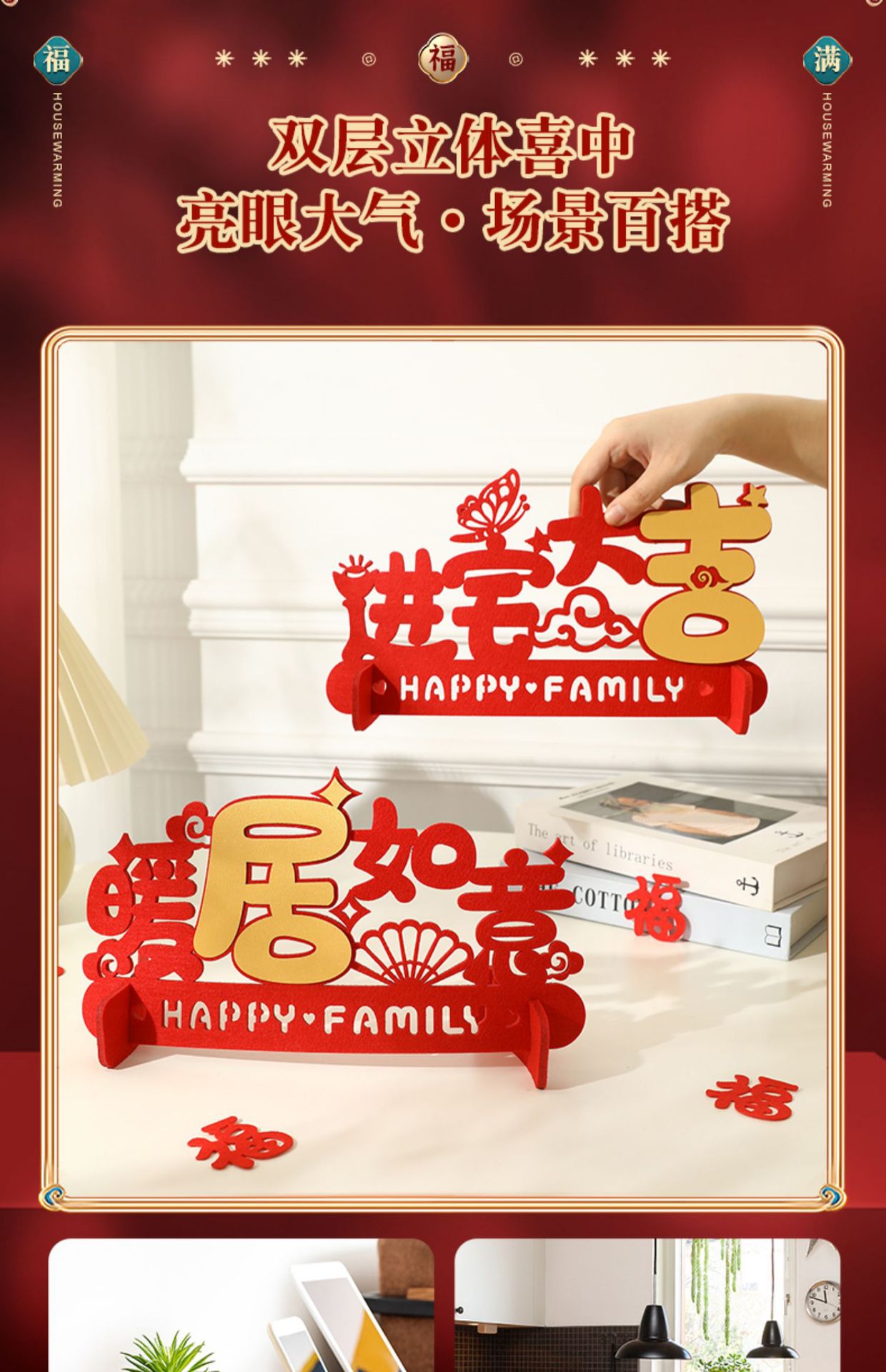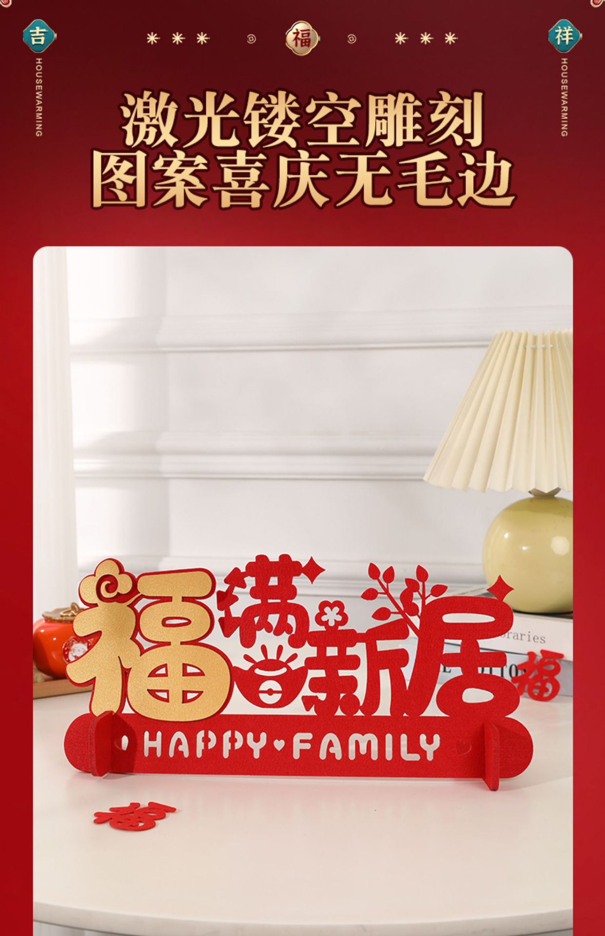 2025フェルト小対聯門貼り国風新年装飾年画不織布配置ドア貼り窓花飾り