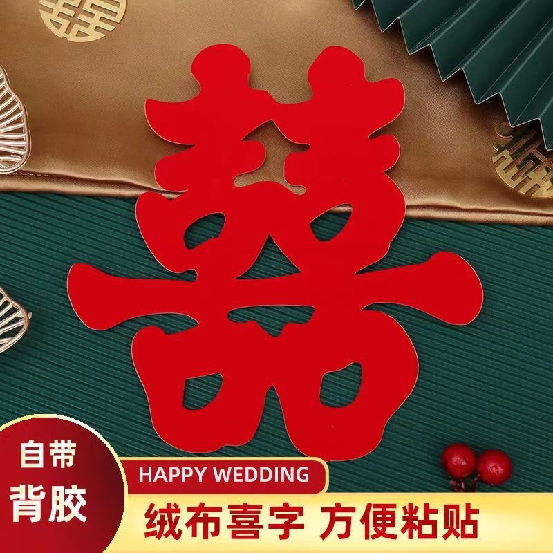 結婚喜字植毛布不乾性自己接着喜字貼り結婚室配置窓花階段喜字貼り結婚用品