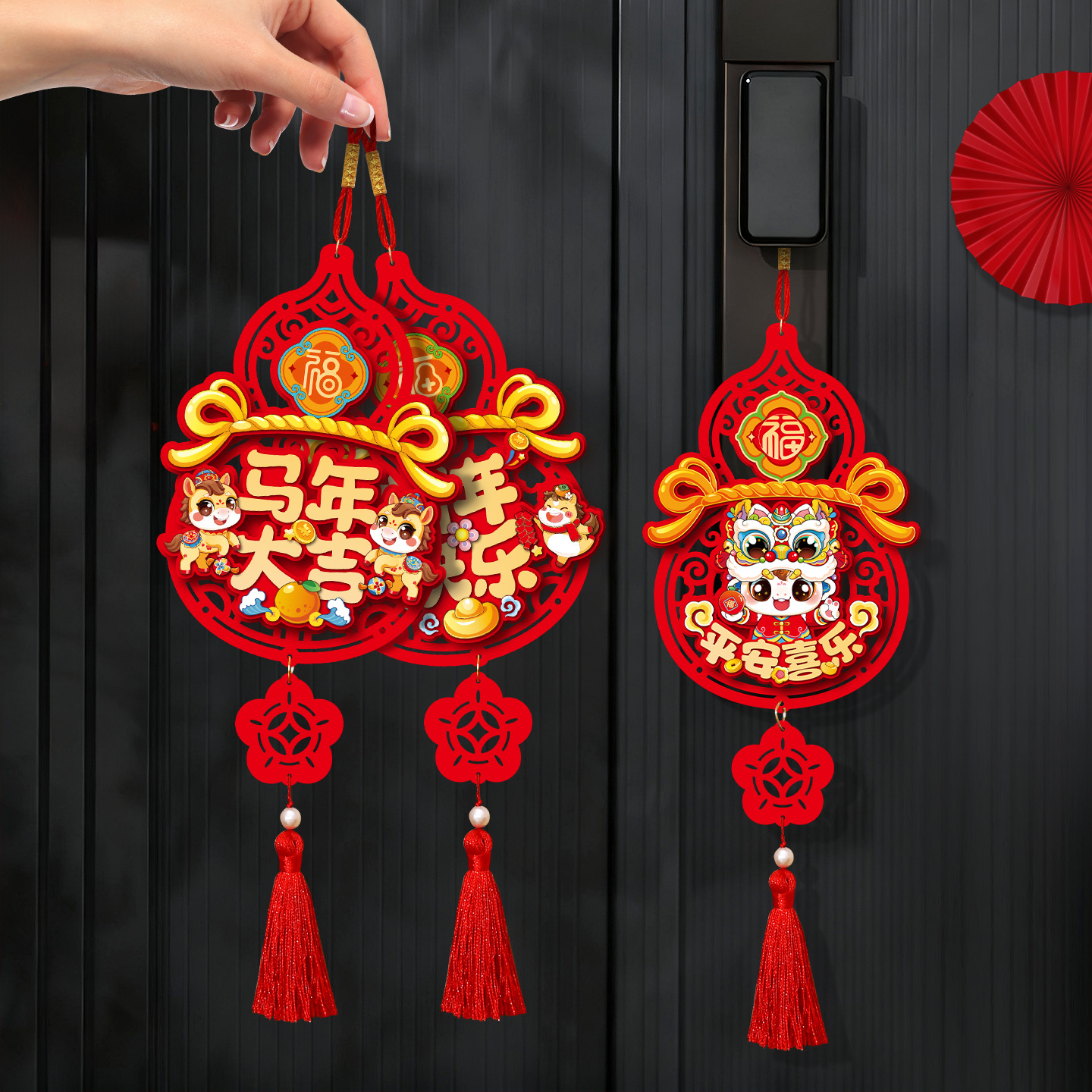 2026新春新年装饰小对联福字门贴挂件窗花立体马年挂饰春节装饰品