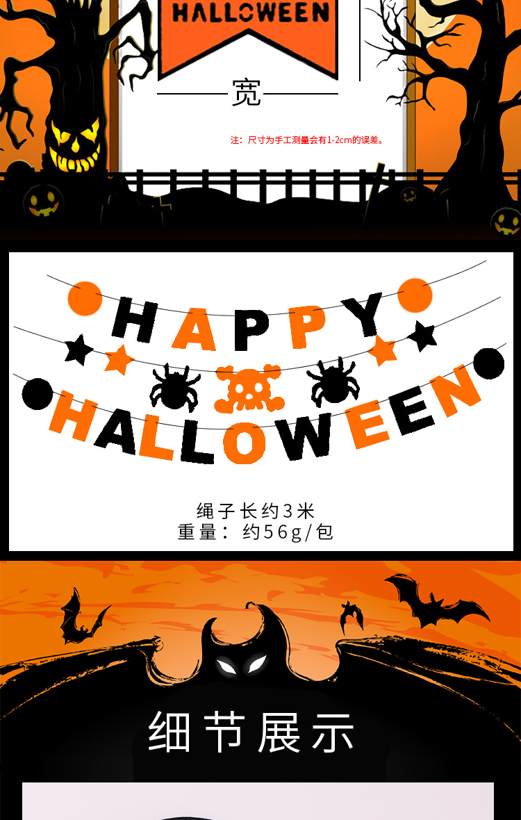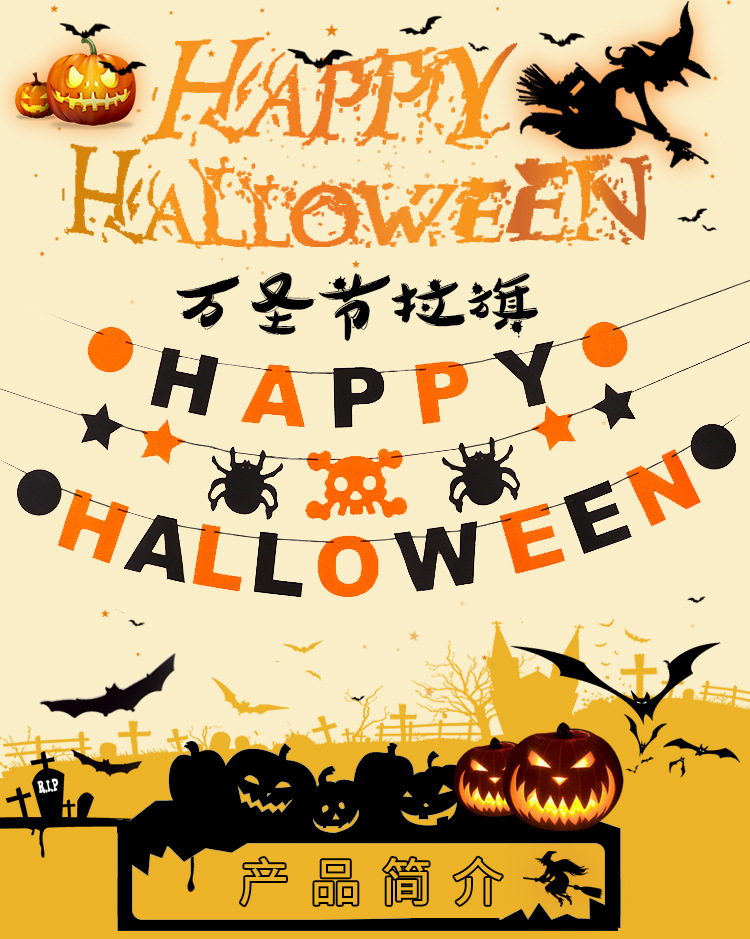 ハロウィーン不織布プルバー配置用品ハロウィーン装飾アルファベットプルフラワーセットdiy吊り旗