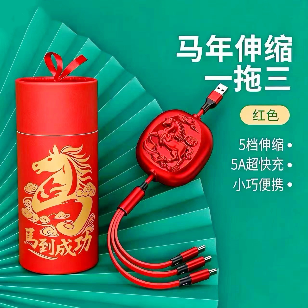 龍年一拉三データ線龍行大運開門紅三合一充電線祥龍送福小プレゼントロゴ