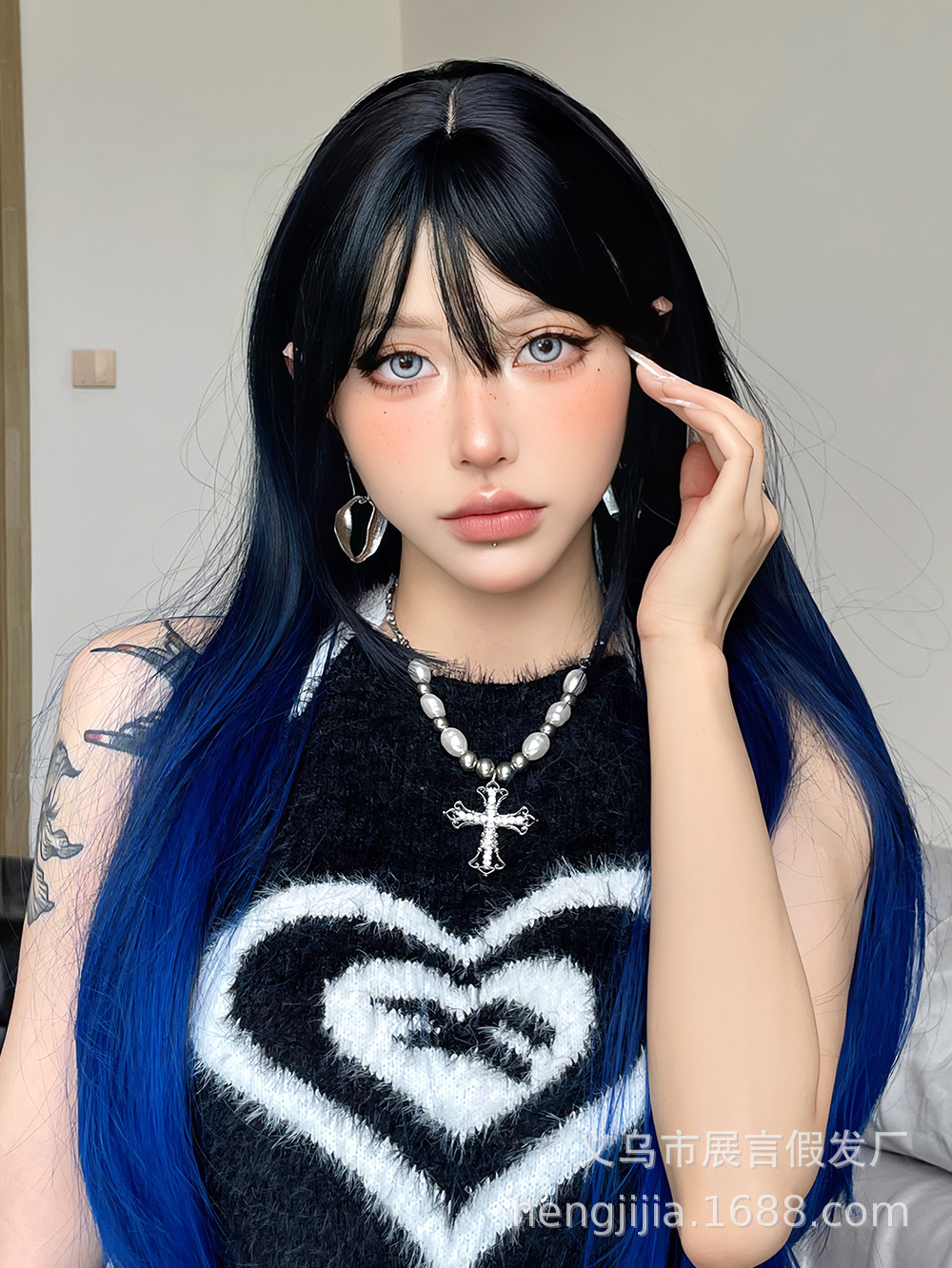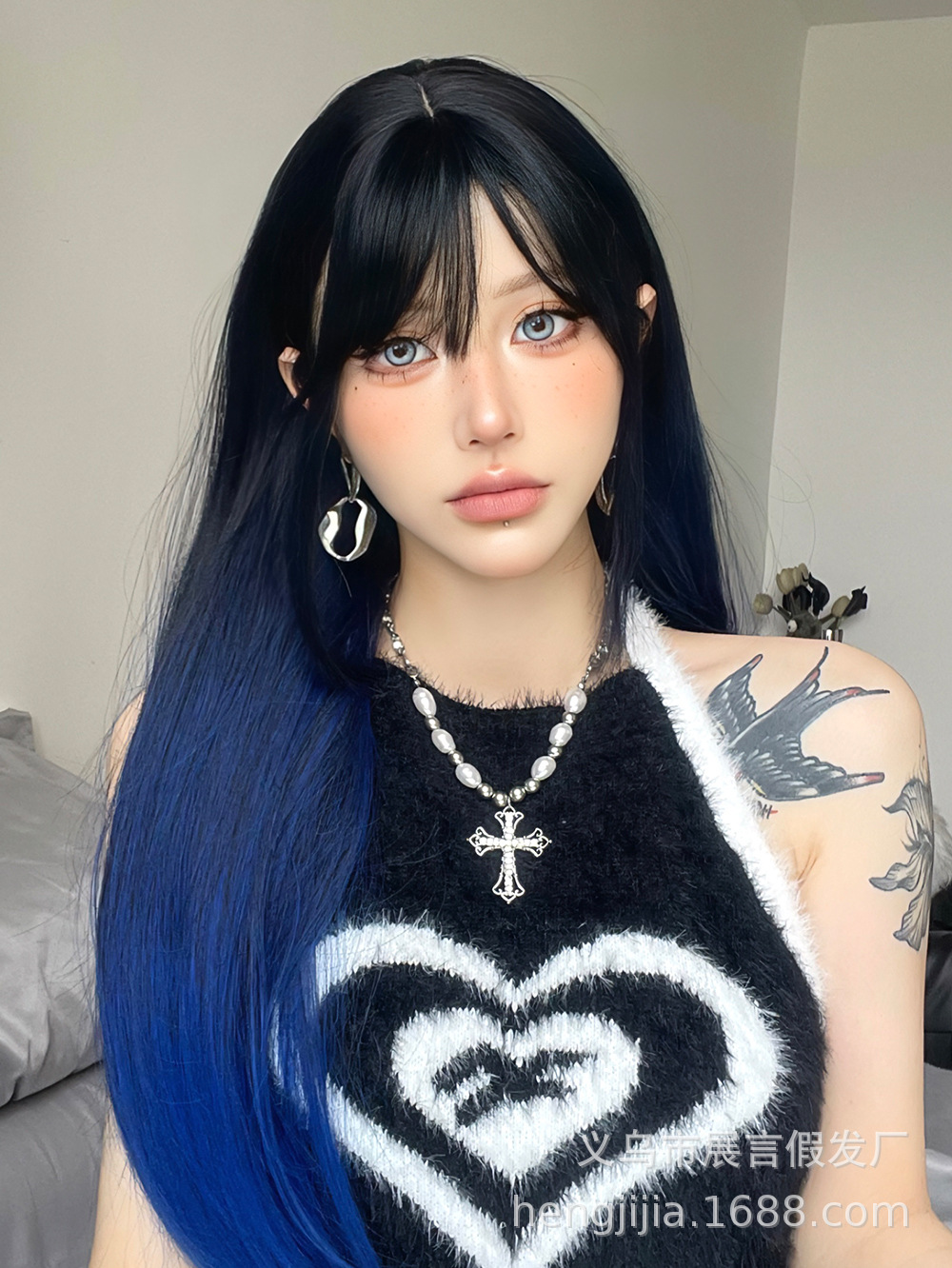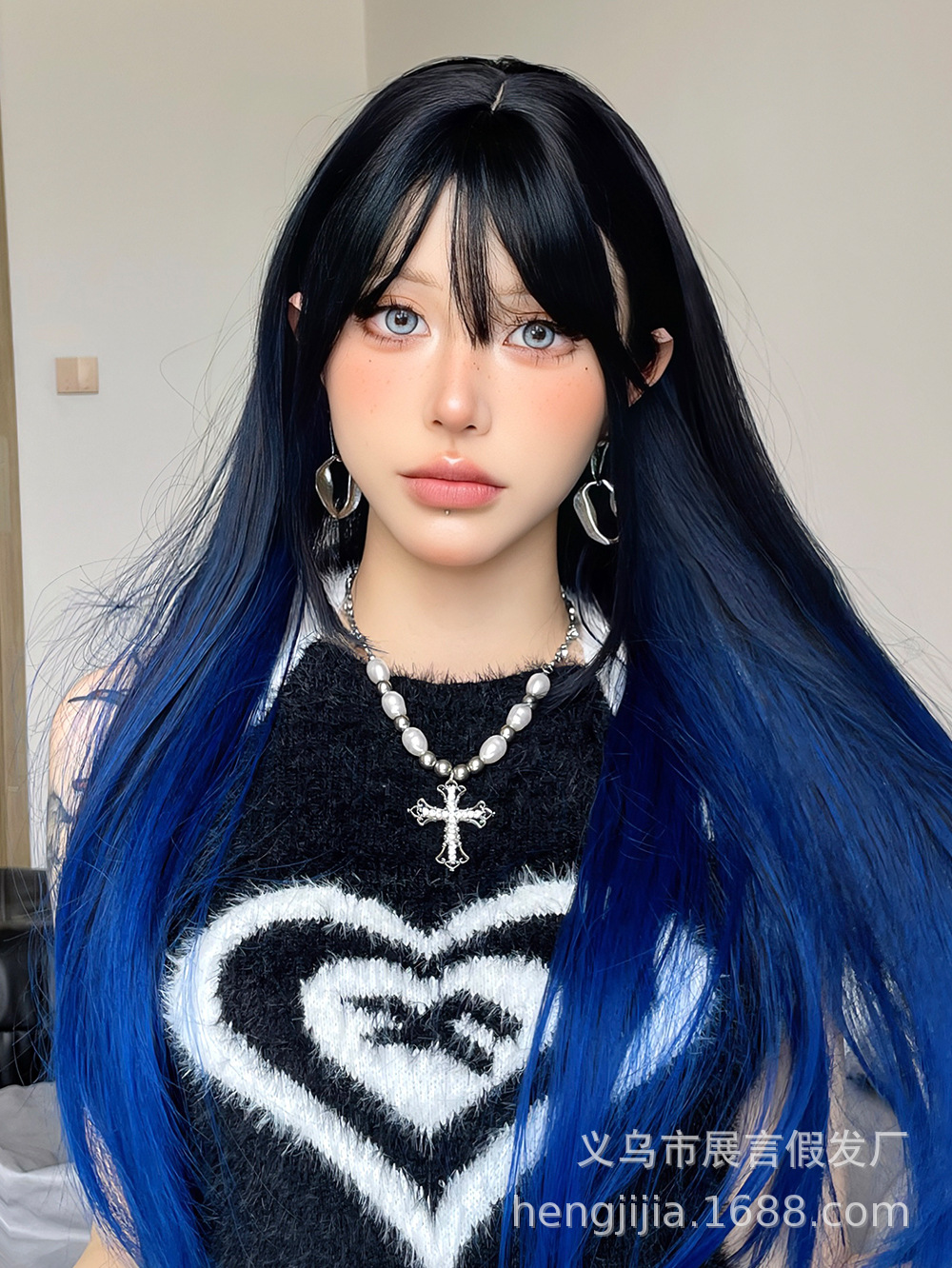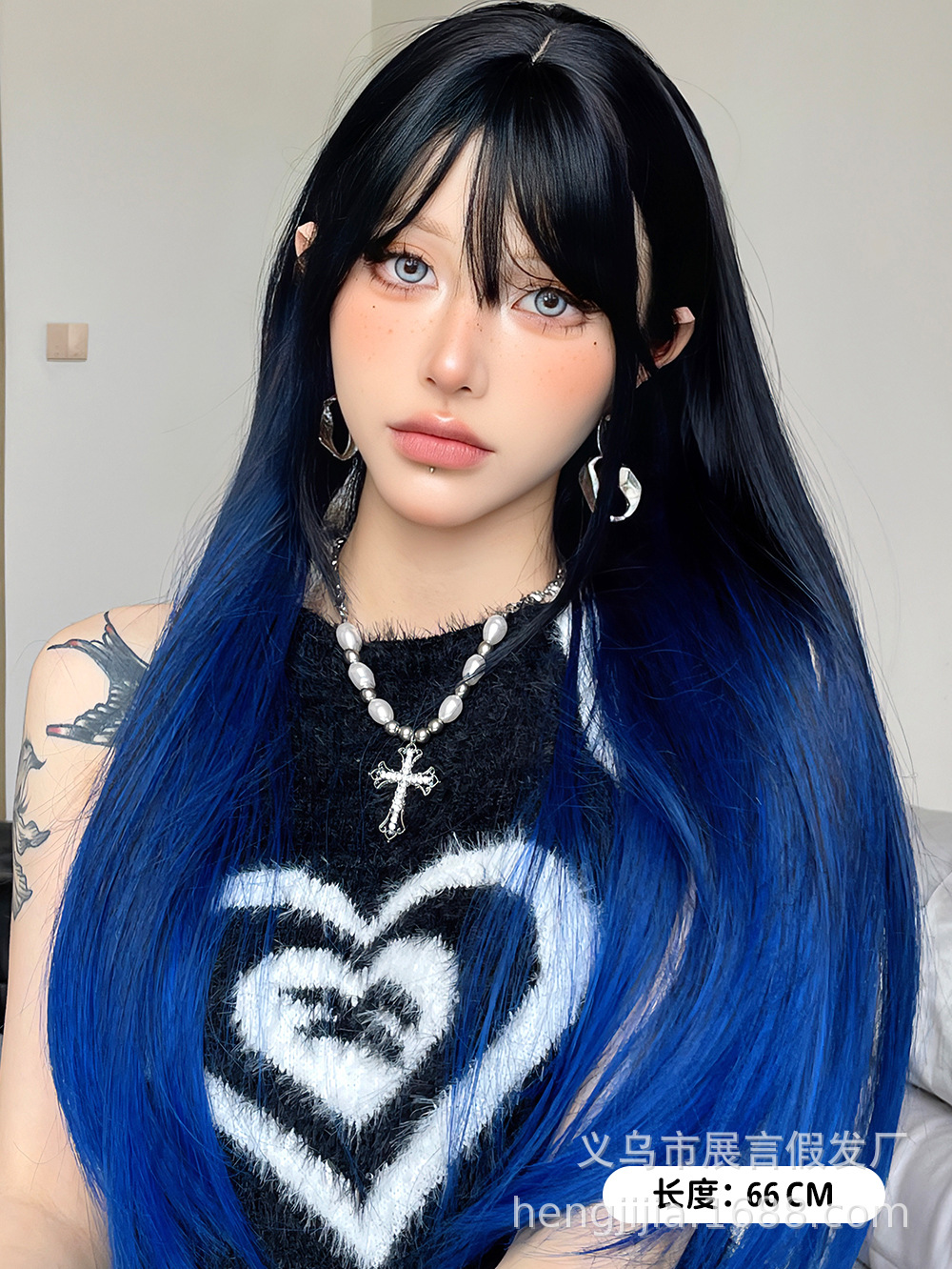 卸売りカラーかつら女lo長直髪ネット赤自然loロリータ日常jk青い少女偽毛