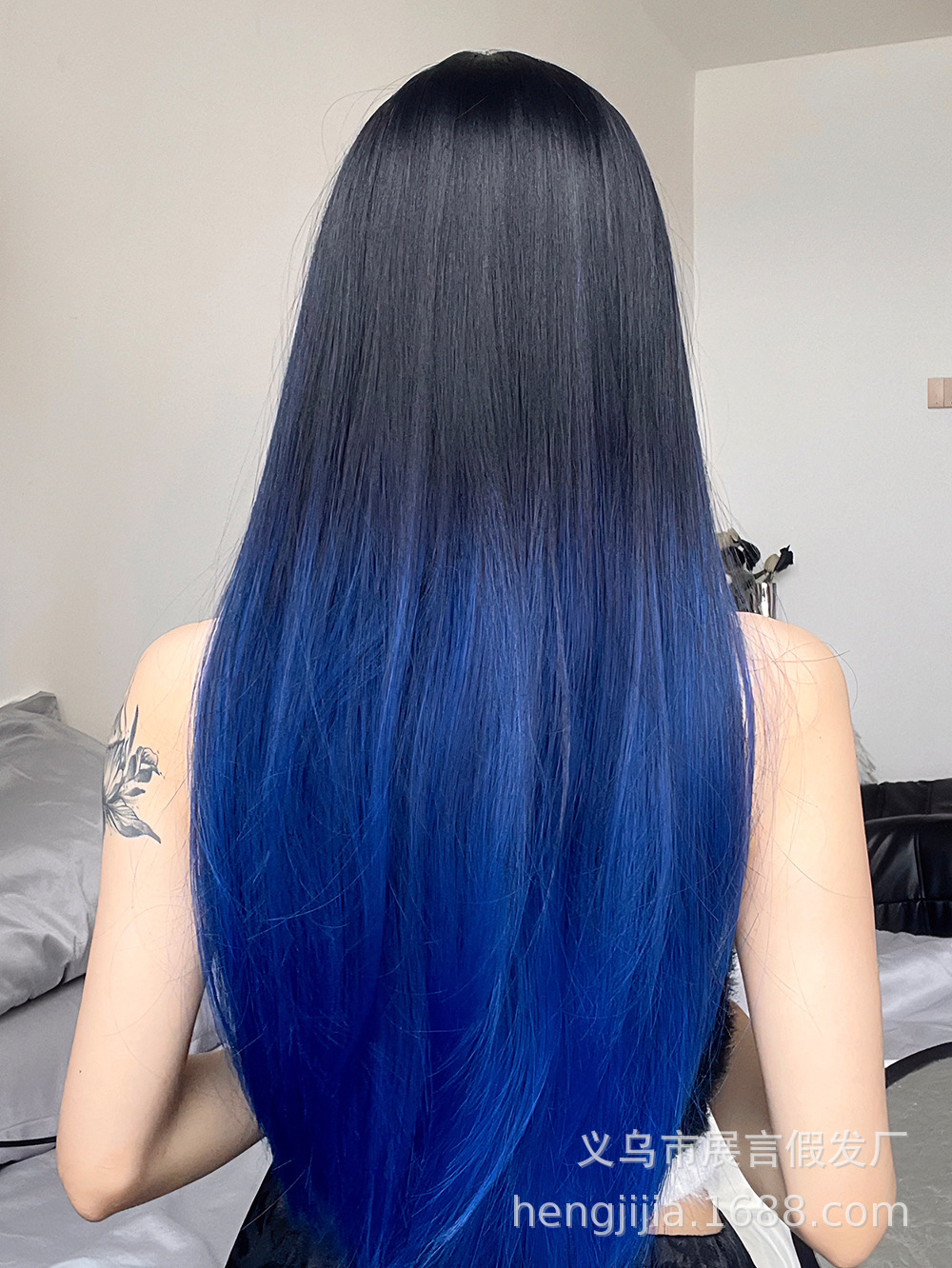 クロスボーダーのかつらの女性の長いストレートのクラインの青いかつらの女性の全体のカバーのlolitaのかつらの自然でリアルなかつらのカバー