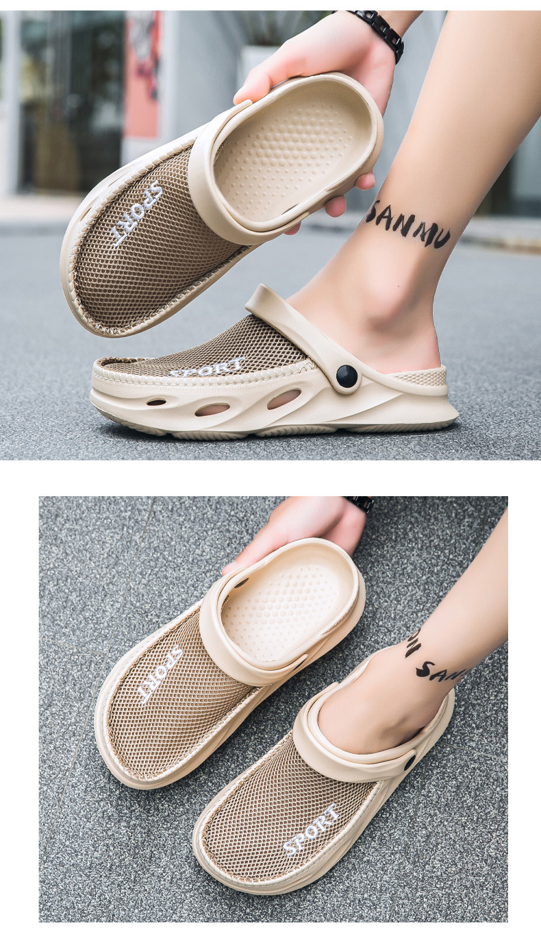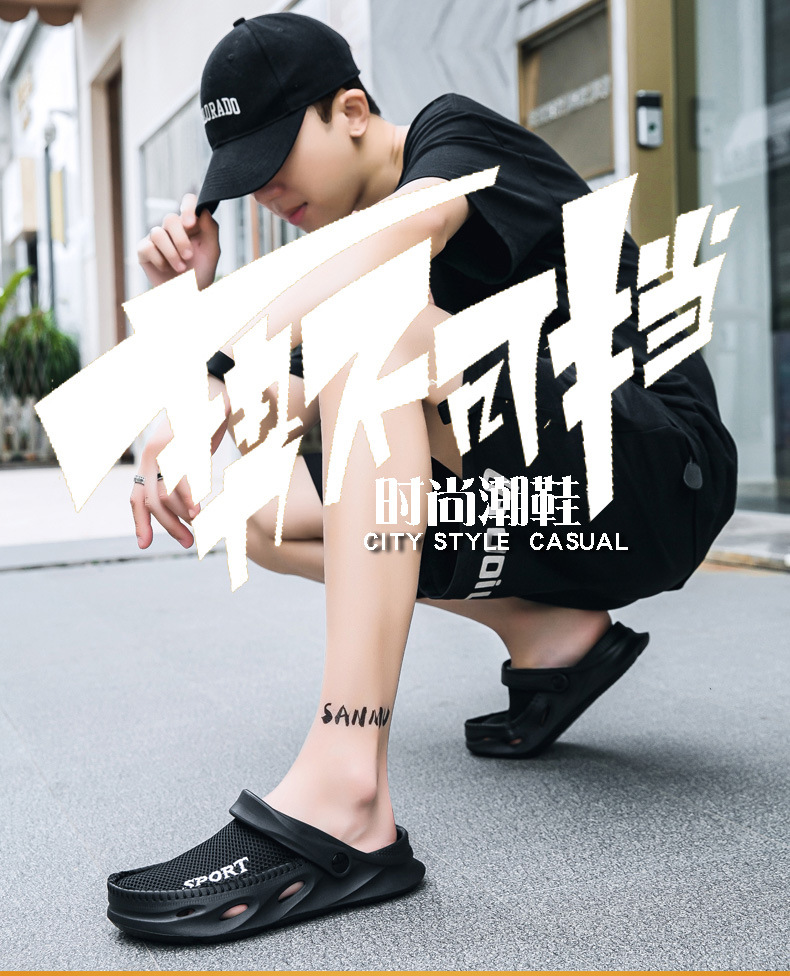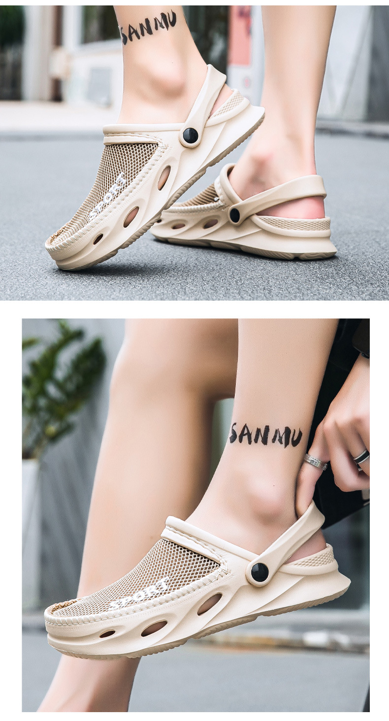 通気性ネット布洞靴男性夏の外は滑り止めサンダルを履いています。