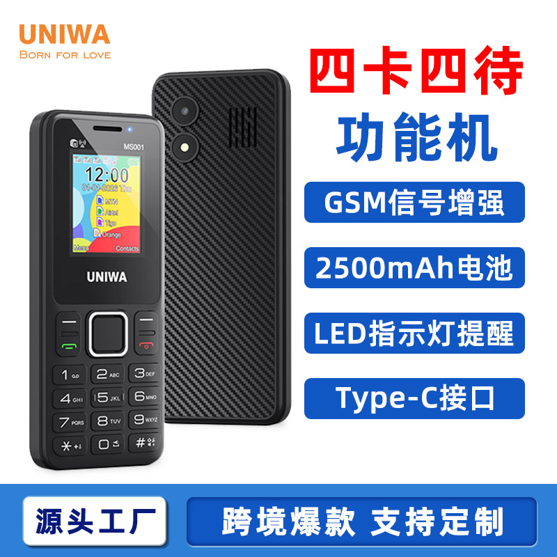 跨境热销新款按键功能手机四卡四待大电池gsm信号增强老年人手机