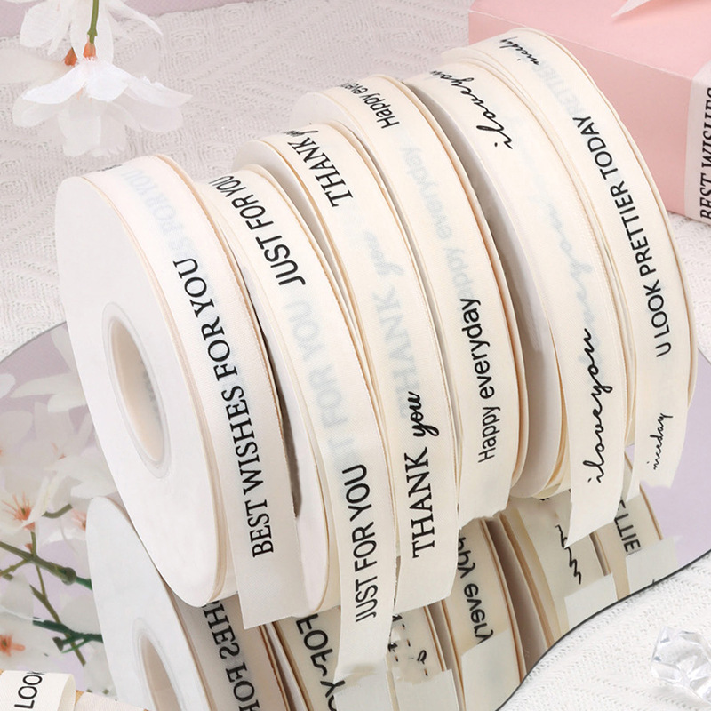 涤棉英文字母带鲜花包装丝带生日蛋糕烘焙装饰鲜花礼物包装蝴蝶结