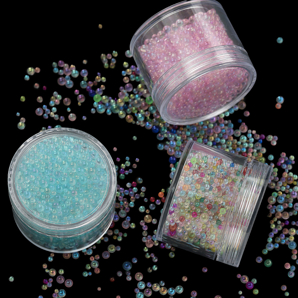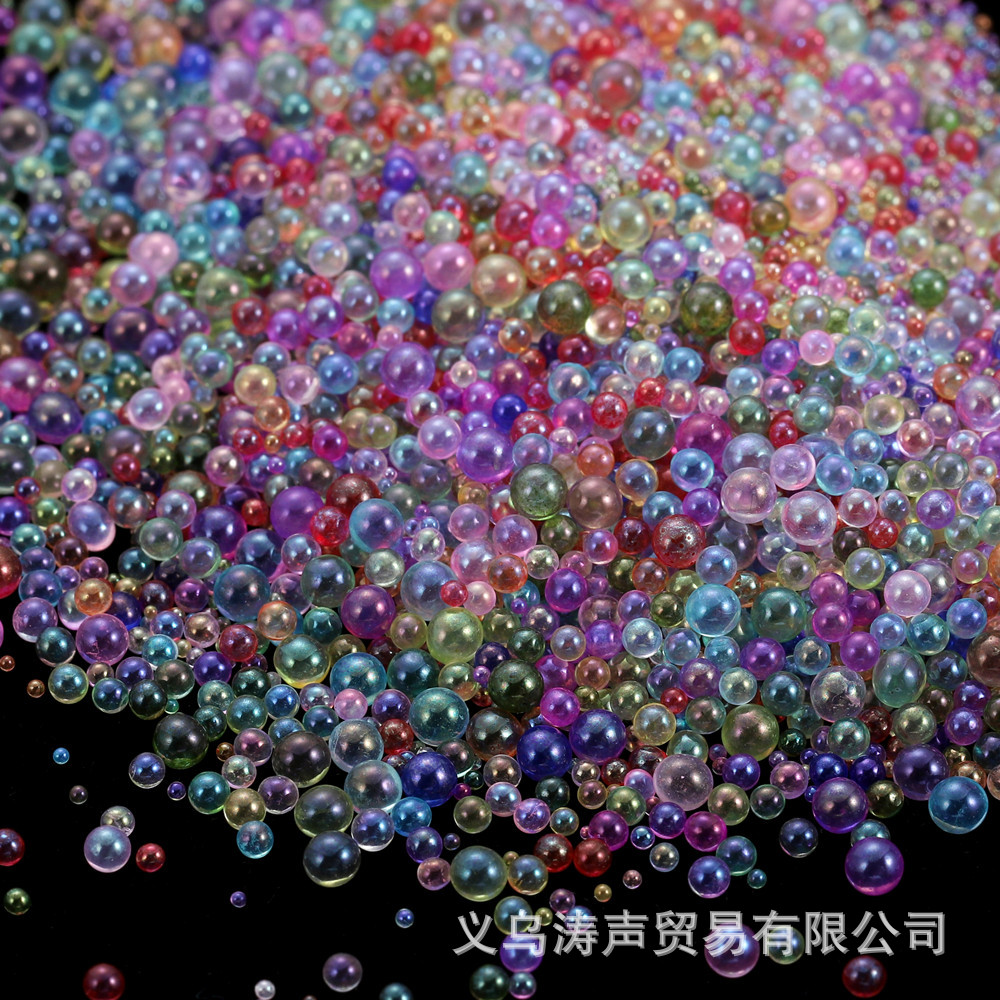 ガラス気泡ビーズ穴なし小さなボールビーズ手作りDIY透明幻彩ネイルビーズ水泡ビーズ