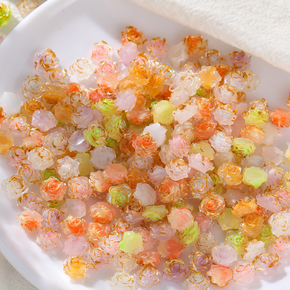 新款热销树脂描金玫瑰花无孔散珠 手工diy美甲手机壳装饰饰品配件
